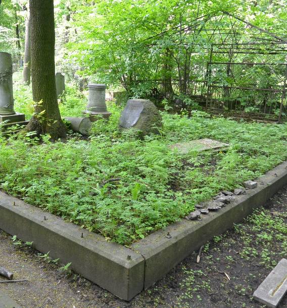 Объемно-пространственное и архитектурно-художественное решение:историческое местоположение захоронения, габариты и конфигурация надгробия (семейное захоронение); историческое решение надгробия в виде «Петровской горки» из серого гранита (навершие утрачено) внутри подиума семейного захоронения ограниченного гранитным поребриком с металлической оградой (утрачена); характер и содержание надгробных надписей..