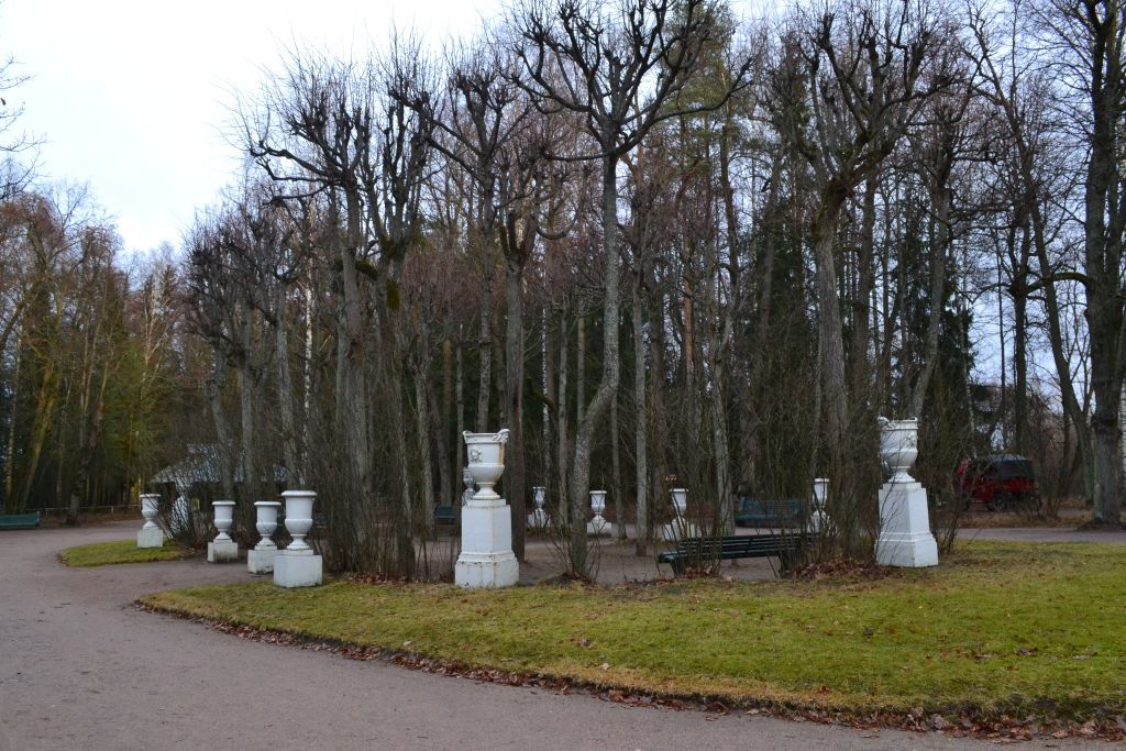 Объемно-пространственное и планировочное решение территории:историческое местоположение в центральной части парка возле «Павильоном «Молочня»;визуальные связи с элементами ансамбля, в том числе «Павильоном «Молочня», «Воздушным театром», «Большими кругами».Объемно-пространственное и архитектурно-художественное решение:овальная площадка, образованная газоном и рядом лип и акаций;деревянная трельяжная беседка в центре площадки*; * в настоящее время утрачен;пятнадцать литых чугунных ваз (6 больших и 9 малых*); *одна малая ваза перенесена на территорию «Вольерного участка»;вазы большие на высоких постаментах с профилировками; по типу кратера с вытянутым туловом, декорированным ложчатым орнаментом, женскими маскаронами, с профилировками в верхней части, поясом ложчатого орнамента с цветочными розетками, ручками, стилизованными в виде мужских масок с завитками аканта;вазы малые на невысоких постаментах, по типу кратера с вытянутым туловом, декорированным ложчатым орнаментом в нижней части, и орнаментальным поясом по краю горловины.Насаждения:ряд лип и акаций, высаженных по внутреннему контуру овальной площадки.