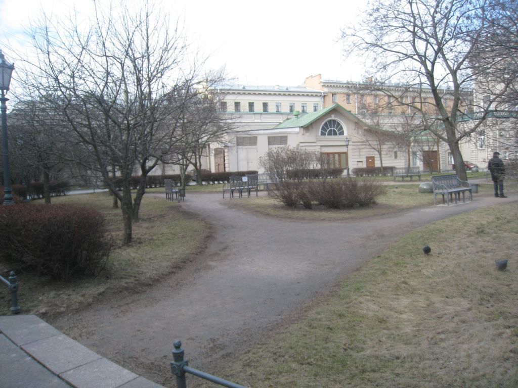 Объемно-пространственное и планировочное решение территории, рельеф: объемно-пространственное и планировочное решение сада; рельеф - равнинный, без выраженных перепадов; Объемно-пространственное решение: пейзажный тип сада: сочетание планировочной системы садово-парковых дорог с полуоткрытыми пространствами, группами насаждений, фонтаном в северной части сада и с открытыми пространствами площадок и газонов (обыкновенных); местоположение, габариты и конструкция садово-парковых набивных дорог и площадок (из высевок гранита розового цвета) на щебеночном основании; видовой состав деревьев (в т.ч. клён Шведлера, клён татарский, яблоня домашняя, яблоня Недзвецкого, черемуха Маака, клён остролистный, липа мелколистная) и кустарников (барбарис, шиповник, роза, спирея, сирень), лиана из винограда девичьего; фонтан (гранит) в плане круглой формы; чаша фонтана с профилем по внутреннему краю и валиком по внешнему краю; площадка фонтана выложена гранитными плитами; по краю площадки профилированный борт.