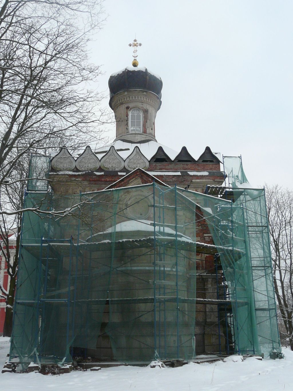 1Объемно-пространственноерешение:исторические* габариты и конфигурация одноэтажного здания с криптой в цокольном этаже, с главным кубическим объемом, завершенным четырехскатной кровлей, увенчанной луковичной восьмигранной главкой с ребрами на круглом барабане-шейке, с запада и с востока примыкают пониженные объемы притвора и алтаря с апсидой, завершенной конхой; исторические конфигурация и габариты крыши;исторический материал окрытия (металл) и характер отделки кровли;исторические кресты - местоположение, габариты и конфигурация, материал и характер * здесь и далее под историческим понимается облик памятника по состоянию на 1860-е гг. (проект А.И.Штакеншнейдера).2Конструктивная система здания:исторические капитальные стены (кирпичные);исторические сводчатые перекрытия –местоположение, габариты, конфигурация, в том числе крестовый свод крипты, цилиндрический свод притвора и купольный на парусах свод церковного зала;историческое купольное перекрытие - местоположение, габариты, конфигурация;лестница – исторические местоположение, габариты, конфигурации.3Объемно-планировочноерешение:историческое объемно-планировочное решение церковного зала и крипты.4Архитектурно-художественное решение фасадов:архитектурно-художественное решение фасадов в характере русско-византийской архитектуры, в том числе:материал отделки цоколя – известняк, гранит, цоколь завершен валиком;оформление нижней части фасадов плитами (исторические материал (известняк), габариты, конфигурация), с тягой и карнизом в верхней части, декорированными филенками, в том числе с равноконечными крестами; материал отделки фасада – лицевой кирпич, гладкая штукатурка;историческое местоположение, габариты и конфигурация исторических дверных и оконных проемов;исторический материал (дерево), цвет и рисунок расстекловки оконных и дверных заполнений;ступени по юго-западному фасаду – исторические местоположение, габариты конфигурация, материал;историческое декоративно-художественное оформление фасадов, в том числе: стилизованный аркатурно-колончатый пояс;фриз оформленный алмазной гранью (в завершении основного объема);венчающий профилированный карниз;барабан: оформление нижней части барабана завершенной валиком известняковой скобой;оформление оконных проемов барабана профилированными наличниками;оформление барабана прямоугольными филенками с вписанными крестами;барабан завершают профилированные тяги, стилизованный аркатурно-колончатый пояс и венчающий профилированный карниз;исторические местоположение, габариты, конфигурация орнаментального декора, в том числе:ряд стилизованных кокошников над венчающим карнизом центрального кубического объема;¾ колонны, в том числе с декоративным оформлением в виде веток винограда и алмазной гранью.5Декоративно-художественная отделка интерьеров:архитектурно-художественное оформление интерьеров в соответствии с проектом А.И.Штакеншнейдера.