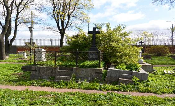 Могила Бычкова А.Ф. (1818-1899), археографа, кон. XIX в. (надгробие) 6-й участок, 4-я дорожка1.Объемно-пространственное и архитектурно-художественное решение:исторические местоположение, габариты и конфигурация участка (семейное место); надгробие в виде креста с фигурным основанием из чёрного гранита, на прямоугольном в плане ступенчатом пьедестале, внутри семейного захоронения, с поребриком и оградой; ограда – вид материала и техника исполнения (металл, ковка), исторический рисунок (диагональная сетка); характер и содержание надгробной надписи.