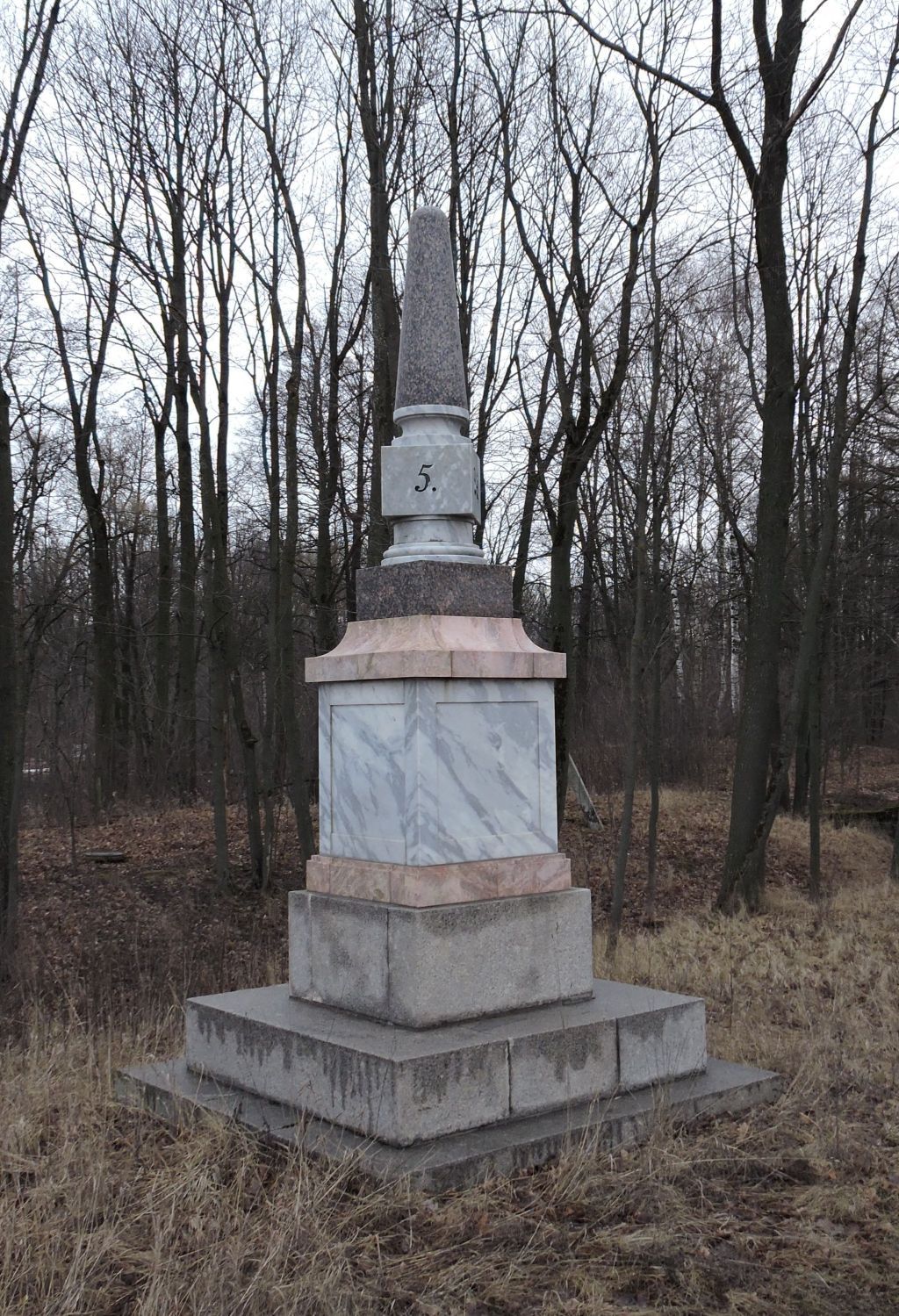 1.Объемно-пространственноерешение:историческое местоположение, конфигурация, габариты столба; трехступенчатый стилобат на основании (материал – гранит); цоколь состоящий из центрального куба на плинте и карнизной части (материал - мрамор); верхняя часть столба - обелиск в виде заточенного сверху конуса (материал – гранит) на круглом основании на кубе, установленном на круглом основании (материал - мрамор), укрепленном на цоколе кубический формы (материал - гранит).2.Конструктивная система и декоративно-художественное решение:материал столба (мрамор, гранит, кирпич (основа)); цифры, выполненные в контррельефе, тонированные, обозначающие версты «1/28».