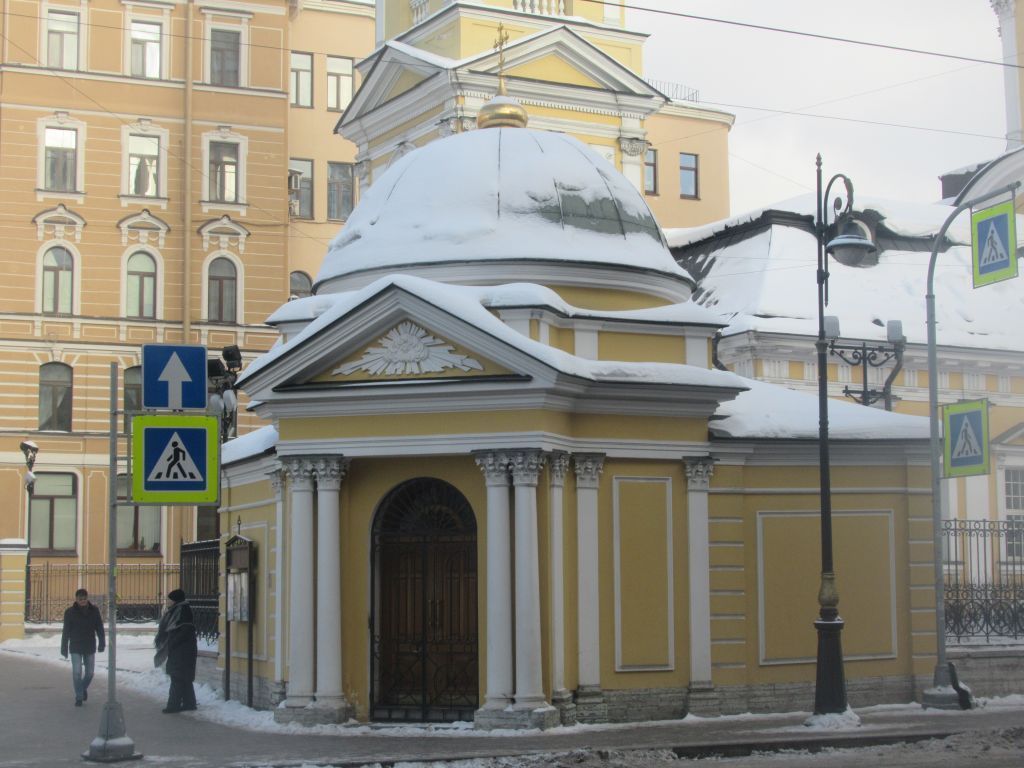 Объемно-пространственное решение: габариты одноэтажного, однокупольного здания, сложного в плане, расположенного на углу Моховой улицы и улицы Белинского;конфигурация и габариты скатной крыши, конфигурация и габариты купола,Конструктивная система:исторические капитальные стены – местоположение, материал (кирпич);купольный свод основного объема;портик на четырех колоннах коринфского ордера, с известняковым основаниемАрхитектурно-художественное решение фасадов: лицевые фасады, их историческое, цветовое и архитектурно-художественное решение в формах классицизма; цоколь, облицованный известняковой скобой;характер отделки фасадов: окрашенная штукатурка;входной проем с полуциркульным завершением;оформление портика: антаблемент с профилированным карнизом, гладким фризом и профилированным архитравом, в поле треугольного фронтона лепная композиция – Всевидящее око в сиянии;оформление фасадов основного объема часовни: пилястры коринфского ордера, между ними прямоугольные филенки;оформление фасадов пониженных частей часовни: рустованные лопатки, прямоугольные филенки между ними, профилированная тяга в верхних частях стен;венчающий профилированный карниз; аттиковая стенка над центральной частью часовни, оформление – лопатки, профилированный карниз;оформление барабана – профилированный карниз под окрытием купола;