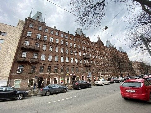 Объемно-пространственное решение:историческое местоположение прямоугольного шестиэтажного лицевого корпуса;воротные проезды* – местоположение, габариты, конфигурация;*в настоящее время левый воротный проезд переоборудован под торговое помещение;крыша – исторические габариты и конфигурация (двухскатная), включая высотную отметку конька, шатровое завершение башен и шпили, материал окрытия кровли (включая башни и шпили) - кровельное железо.Конструктивная система:местоположение наружных и внутренних капитальных стен;материал капитальных стен – кирпич;историческое местоположение междуэтажных перекрытий;исторические воротные проезды - местоположение, конфигурация и габариты; проем – конфигурация (с лучковым завершением), габариты и высотные отметки, перекрытие воротного проезда – прусские своды;«прусские» своды чердачных перекрытий лестничных клеток;исторические лестницы (две парадные, четыре дворовые) – местоположение, габариты, конструкция (по косоурам), тип (двухмаршевые), материал ступеней (известняк);Парадные лестницы 2ЛК и 5ЛК:прямоугольные в плане межэтажные площадки, покрытые метлахской плиткой с рисунком «соты», историческое цветовое решение;ограждение лестничных маршей парадных лестниц 2ЛК и 5 ЛК – материал (металл), техника исполнения (ковка), рисунок (из вертикальных широких стоек с стилизованным растительным орнаментом);профилированные деревянные поручни.Объемно-планировочное решение:Объемно-планировочное решение помещений, указанных в п. 5.Архитектурно-художественное решение фасадов:лицевой фасад:симметричная композиция фасада с использованием элементов неоготики;материал и характер отделки цоколя – гранит;материал и характер отделки фасада – красный лицевой кирпич;центральный треугольный аттик с башенками-пинаклями, с двумя башенками по краям, полукруглые основания башенок в уровне 4-6-го этажей, завершенными шпилями*;*часть завершений в настоящее время утраченадве шатровых башни с треугольным фронтоном посередине, расположенные по краям фасада, с двумя башенками по краям, полукруглые основания башенок в уровне 4-6-го этажей;две шатровых башни с тремя треугольными фронтонами, расположенные по бокам от центра фасада, с четырьмя башенками, полукруглые основания башенок в уровне 4-6-го этажей;башенки-пинакли (6 штук);балконы (8 штук) – местоположение (по осям башен в уровне третьего и четвертого этажей), габариты, конфигурация (прямоугольные в плане);ограждение – материал (кирпич), оформление (четыре филенки и поребрик в верхней части);проемы воротных проездов с лучковой перемычкой;оформление воротного проезда – замковый камень и лучковая кирпичная перемычка;историческое местоположение, габариты и конфигурация (с лучковым завершением) дверных проемов;оформление дверных проемов – профилированный наличник, лучковая перемычка с замковым камнем;местоположение, габариты, конфигурация оконных проемов (прямоугольные и полуциркульный во фронтоне центральных башен);оформление оконных проемов: 1-ый этаж – профилированные штукатурные наличники и клинчатая перемычка;2-ой этаж – клинчатая перемычка и кирпичный наличник с кирпичным рустом;3-ий этаж - клинчатая перемычка, кирпичный наличник и подоконная доска на выступающем ряду кирпичей;4-ый этаж - клинчатая перемычка с замковым камнем, кирпичный 
