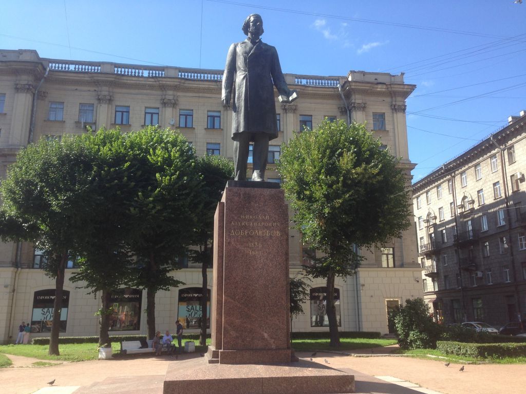 Иная видоваяпринадлежность:памятник, представляющий собой бронзовое скульптурное изображение Н.А. Добролюбова, в полный рост, держащего книгу в левой руке (скульпторСинайский В.А., архитектор Сперанский С.Б.)*фигура установлена на прямоугольном постаменте и ступенчатом стилобате розовогополированного гранита; надписи: на постаменте с лицевой стороны врезными золочеными знаками:«Николай/ Александрович/Добролюбов / 1836 / 1861»;на плинте скульптуры с тыльной стороны:«Скульптор Синайский «Монументскульптура»Ленинград 1957»*отлит на заводе «Монументскульптура»,1957г.;постамент изготовлен на камнеобрабатывающем заводе«Возрождение»;открыт 26 ноября 1959г.