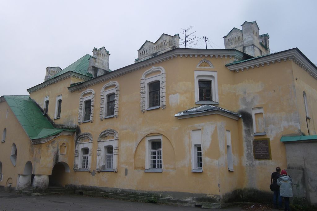 Объемно-пространственное решение:Сложная в плане двухэтажная постройка с повышенным средним объемом, объемами крылец со стороны восточного, западного и северного фасадов и объемом лестничной клетки со стороны северного фасада. Под северной частью здания - подвальное помещение.-исторические габариты и конфигурация здания в плане;- исторические форма и габариты крыши (пологий шатер над повышенным объемом основной части, вальмовая над примыкающими к нему объемами основной части, двускатная над северо-восточной частью основного объема и западным крыльцом, односкатная в сочетании с двускатным покрытием у восточного и северного крылец, односкатная над объемами лестничной клетки);- расположение, габариты и архитектурное оформление дымовых труб.Конструктивная система здания:- исторические конструкции; фундаменты (из известняковой плиты), наружные и внутренние капитальные стены (кирпичные);- перемычки оконных проемов;- отметки междуэтажных перекрытий;- конструкции лестницы восточного крыльца; материал ступеней - известняк;- перекрытие лестничного всхода восточного крыльца в форме ступенчатого цилиндрического свода;- конструкции внутренней (главной) лестницы и лестничной клетки (пом. 3,4 1, 2 этажей) (лестница - трехмаршевая, с опорой маршей и площадки 2-го этажа на квадратные в сечении столбы, объединенные арками /ползучей и трехцентровыми/, с парапетным ограждением; в перекрытии лестничной клетки - сомкнутый свод с распалубками над оконными проемами 2-го света);- конструкции внутренней лестницы (пом. 3-Н, 28 1-го этажа / пом. 16-17 2-го этажа) (лестница-двухмаршевая, Г-образная в плане, со ступенями из лещадной плиты, на ступенчатых сводах и перекрытиями виде ступенчатого и цилиндрического свода);- конструкции внутренней лестницы (пом. 18 2-го этажа в северной части здания) (лестница -двухмаршевая, с опорой на продольную стену, со ступенями из лещадной плиты);- крыша (материал покрытия, соответствующий историческому -гладкий металл).Объемно-планировочное решение:В габаритах исторических капитальных стен.Архитектурно-художественное решение:Фасады - в формах неорусскогостиля.Лицевой (восточный) фасад -асимметричный. Средняя часть -повышенная, южная часть - пониженная, в виде выступа-ризалита, северная часть (крылья) - пониженная. К торцу южной части с севера примыкает объем крыльца с арками на бочкообразных столбиках и диагональным обрезом стены лестничного всхода. Угловая часть северного крыла на уровне 2 этажа срезана по диагонали.Средняя часть - в 2 оси. Южный ризалит- в 3 оси. Северное крыло-в 4 оси.- вертикальные и горизонтальные членения - выступы южного ризалита и крыльца, цоколь, венчающие карнизы;- проемы (ритм, габариты, конфигурация): дверной - полуциркульный; оконные - двойные полуциркульные с гирькой (1-2 оси 1 этажа южного ризалита); полуциркульный (3-я ось 2 этажа южного ризалита), с трехцентровой перемычкой (1-2 оси 2 этажа южного ризалита, 1 - 2 оси средней части, 1 - 3 оси 1 - 2 этажей северного крыла, фасад крыльца); прямоугольный со скругленными верхними углами (4-я ось 1 - 2 этажей северного крыла); в форме ползучей арки (на фасаде крыльца) (проем с трехцентровой перемычкой на фасаде крыльца заложен);- заполнения оконных проемов (рисунок переплета, материал -дерево);- архитектурно-декоративное оформление: облицовка цоколя путиловской плитой; бочкоо
