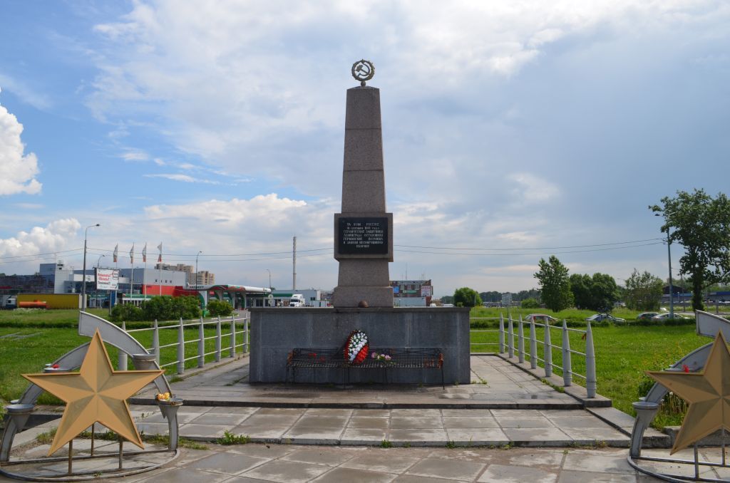 • Объемно-пространственное и объемно-планировочное решение территории:местоположение границ территории;планировочная система регулярного типа;Элементы планировочной структуры: Закругленная площадка с пилонами в северной части, дорожка, идущая от нее на юго-запад по пандусу, обсаженная рядами деревьев до моста, ограниченная бордюром, участок газона в северной части, ограниченной декоративными посадками кустарника, мост через р. Дудергофку, площадка в южной части мемориала, ограниченная декоративными посадками кустарника, с девятью газонами-клумбами в центральной части и стенкой вдоль линии шоссе, включая площадку с монументом в северо-восточной части, вынесенную за линию берега – местоположение, тип (мощение – площадки, дорожка, набивной – аллея).Вертикальное берегоукрепление в основании площадки с монументом в южной части площадки.Ландшафтные группы и массивы деревьев: посадки лип по сторонам от пандуса с дорожкой до моста в северной части мемориала, посадки кустарника, ограничивающие южную часть мемориала и газон в северной части.Конструктивная система:пандус в основании дорожки – материал (железобетон, металл);ограждение моста – местоположение, материал (металл), техника исполнения (литье), рисунок (вертикальные стойки с заполнением в виде прямоугольных рамок с изображением перевернутых лавровых ветвей).• Монумент «Пилоны»:два бетонных пилона, дополненных бетонными стелами-надолбами, оформляющие дорожку к основной части мемориала;на лицевых гранях пилонов гранитные мемориальные доски с выбитыми и тонированнымитекстами – на левом: «Здесь проходил передний край обороны, где насмерть сражались сврагом мужественные защитники Ленинграда», на правом: «Пройдет время, но вечным будет впамяти народа беспримерный подвиг тех, кто отстоял свободу и независимость нашейродины», в верхней части пилонов цифры «1941» и «1944».• Монумент «Обелиск»:четырехгранный обелиск из гранитных блоков с металлическим завершением в виде серпа смолотом в венке, в центральной части широкий прямоугольный блок с мемориальной доской стекстом: «На этом рубеже 18 сентября 1941 года героические защитники Ленинградаостановили германские полчища и заняли несокрушимую оборону»;обелиск на массивном прямоугольном основании, облицованном гранитными плитами с гранитной плитой в завершении;площадка с обелиском окружена оградой со стойками в виде стилизованных снарядов.