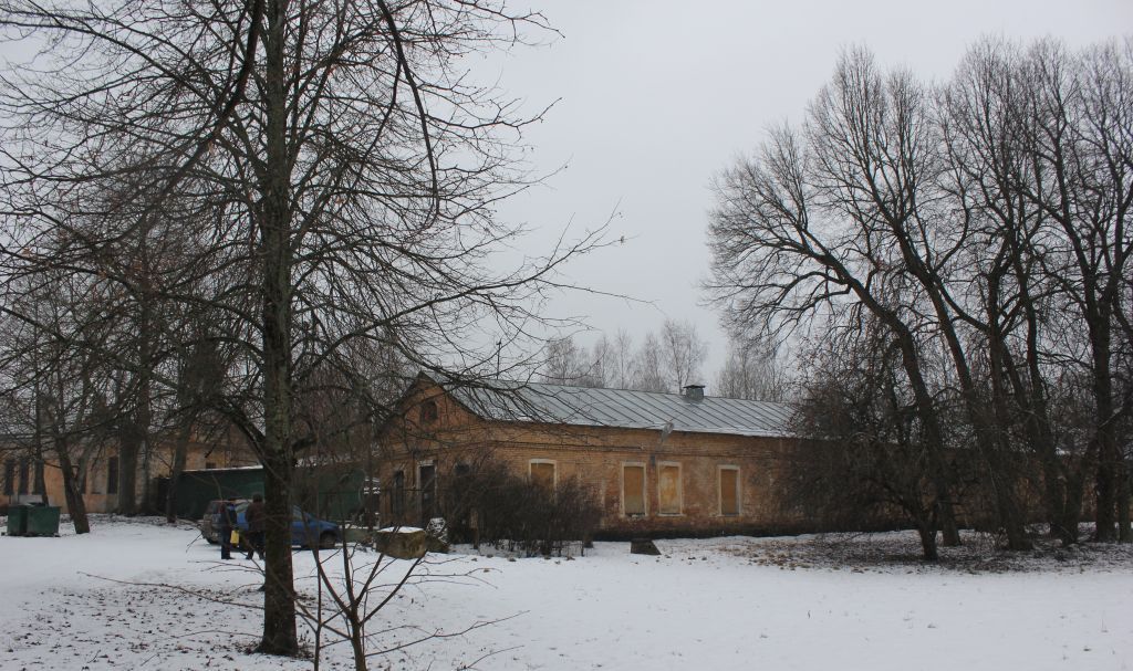 Объёмно-пространственное решение:исторические габариты одноэтажного, прямоугольного в плане корпуса под литерой Т и одноэтажного п-образного корпуса под литерой С, включая крыши (двускатные).два окна - люкарны в каждом корпусе.Конструктивная система здания:исторические наружные и внутренние кирпичные капитальные стены;коробовые своды с распалубками перекрытий первого этажа (корпус под литерой С).Объёмно-планировочное решение:историческое объёмно-планировочное решение в габаритах капитальных стен.Архитектурно-художественное решение фасадов:корпус под литерой 1:северо-восточный и юго-западный фасады на восемнадцать осей: северо-западный и юго-восточный фасады на две оси: материал и характер обработки фасадной поверхности: кирпич;конфигурация (прямоугольная), габариты и местоположение оконных проемов: оштукатуренные наличники оконных проемов: тяги;венчающий карниз: треугольные фронтоны с окнами – люкарнами;корпус под литерой С:северо-восточный фасад на пять осей;юго-восточный фасад на двадцать пять осей;юго-западный фасад на три оси;северо-восточный фасад на семь осей;материал и характер обработки фасадной поверхности:гладкая штукатурка с имитацией руста по углам здания;крыльцо (известняк); конфигурация (прямоугольная), габариты и местоположение дверных и оконных проемов: элементы архитектурно-художественного решения фасада, в том числе: венчающий карниз: треугольные фронтоны с окнами - люкарнами.