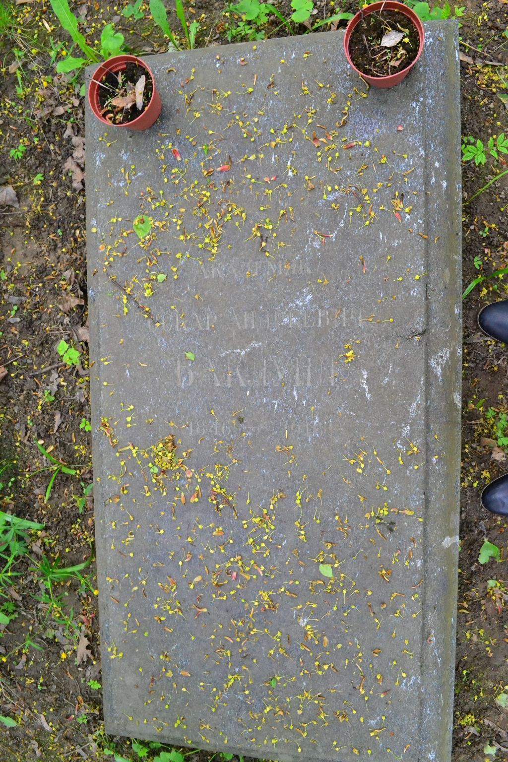 Объемно-пространственное и планировочное решение территории:историческое местоположение захоронения в центральной части кладбища астрономов, расположенного на территории объекта культурного наследия федерального значения «Обсерватория Пулковская», конфигурация участка захоронения (№ 2 на схеме);захоронения в границах участка.Объемно-пространственное и архитектурно-художественное решение:габариты и конфигурация исторического надгробия в виде прямоугольной в плане профилированной надгробной плиты из габбро на прямоугольном в плане гранитном основании, расположенной на земляной площадке (на верхней наклонной полированной поверхности плиты высечены и тонированы контррельефные шрифтовые литеры мемориальной надписи);содержание и характерные особенности надгробной надписи.