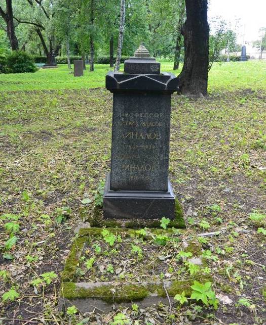 1.Объемно-пространственное и архитектурно-художественное решение: историческое местоположение захоронения, габариты и конфигурация надгробия;историческое художественное решение надгробия в виде квадратного в плане гранитного постамента на гранитном профилированном основании с навершием в виде траурной урны (утрачена) на стилизованной абаке с акротериями; характер и содержание надгробных надписей.