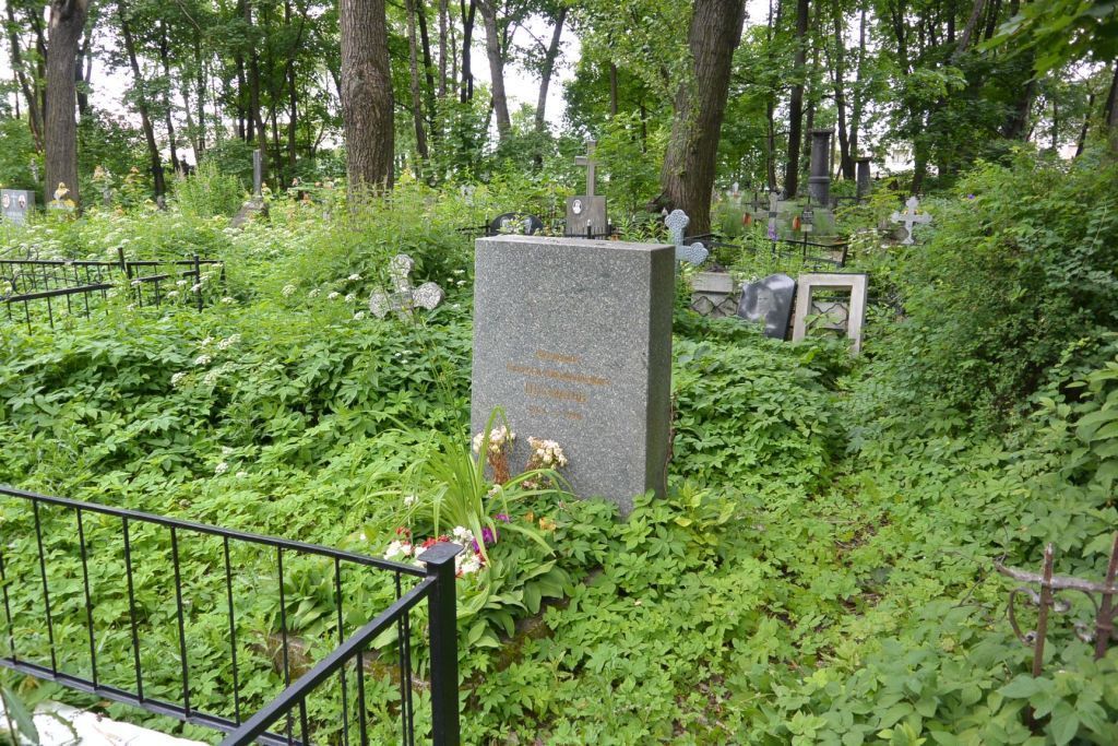 1.Объемно-пространственное и планировочное решение территории: историческое местоположение, габариты и конфигурация участка (№ 16 на схеме); захоронения в границах участка.2.Объемно-пространственное и архитектурно-художественное решение:исторические местоположение, габариты и конфигурация надгробия; художественное решение надгробия (прямоугольная стела); вид материала стелы – габбро; характер лицевой поверхности стелы – гладкая; характер и содержание надгробной надписи.