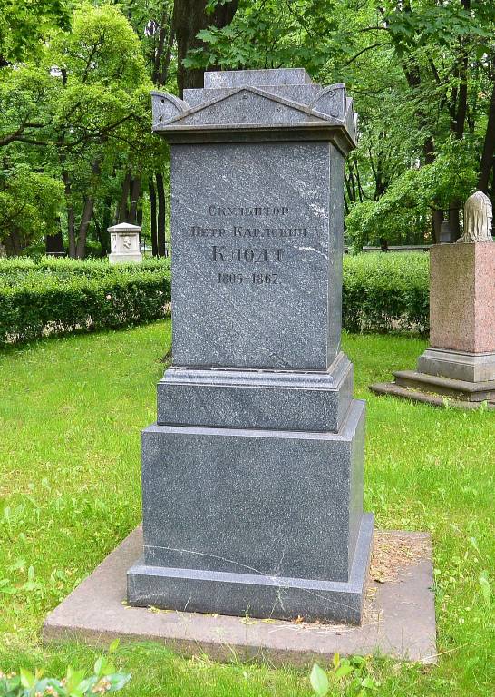 Объемно-пространственное и архитектурно-художественное решение:историческое местоположение захоронения и конфигурация надгробия; историческое надгробие в виде квадратного в плане жертвенника из габбро с завершением в виде стилизованных фронтонов и угловых акротериев, на квадратном в плане пьедестале и основании из красного гранитна; характер и содержание надгробных надписей.
