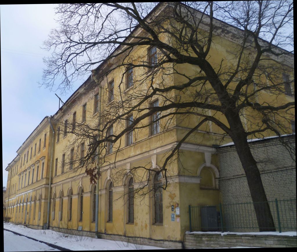Объемно-пространственное решение:прямоугольное в плане здание с тремя боковыми ризалитами, трехэтажное, его конфигурация и габариты; боковые ризалиты, завершенные треугольными фронтонами, их историческое местоположение, конфигурация, габариты; центральный уплощенный ризалит в семь световых осей, его историческое местоположение, конфигурация, габариты; крыша, ее габариты и конфигурация (двухскатная). Конструктивная система: фундамент; наружные и внутренние капитальные стены – местоположение, материал (кирпич); междуэтажные перекрытия – местоположение; своды: крестовые на подпружных арках (перекрытия лестниц); крестовые (помещение Л-1 (I); пологие с распалубками (помещение 2-Н (1); две межэтажные, трехмаршевые лестницы на сводах и столбах, с известняковыми ступенями и металлическими ограждениями, их историческое местоположение (помещения Л-2, Л-3), конструкция, габариты; рисунок ограждений (в виде стилизованной аркады); межстенная, маршевая лестница по сводам, с известняковыми ступенями и металлическим ограждением, ее историческое местоположение (помещение Л-1), конструкция, габариты; рисунок ограждения (в виде стилизованной аркады). Объемно-планировочное решение:историческое объемно-планировочное решение в габаритах капитальных стен. Архитектурно-художественное решение фасадов: лицевые фасады, их архитектурно-художественное решение: материал отделки цоколя – известняковая скоба; материал и характер отделки фасада – гладкая штукатурка; исторические дверные проемы – местоположение (помещения Л-1(I), Л-2(I), 3-Л (I), 2-Н (7, 25), 3-Н(1, 5), 7-Н (1), конфигурация (с полуциркульным завершением), габариты; оформление дверных проемов – профилированные архивольты, замковые камни; исторические оконные проемы – местоположение, конфигурация (с полуциркульным завершением – в уровне 1-го этажа; прямоугольные – в уровне 2-3-го этажей), габариты; оформление оконных проемов 1-го этажа – профилированные архивольты, замковые камни; оформление оконных проемов 2-го этажа – подоконная тяга; оформление оконных проемов 2-го этажа ризалита – гладкие наличники и прямые профилированные сандрики, подоконная тяга; оформление оконных проемов 3-го этажа – подоконные выступы; оконные заполнения – конструкция, рисунок расстекловки; каменное крыльцо, его историческое местоположение (перед помещением в Л-1 (I), конфигурация, габариты; профилированные штукатурные карнизы (соединяющие проемы 1-го этажа, между 1-м и 2-м этажами); венчающий профилированный карниз; два треугольных фронтона, венчающих боковые ризалиты.
