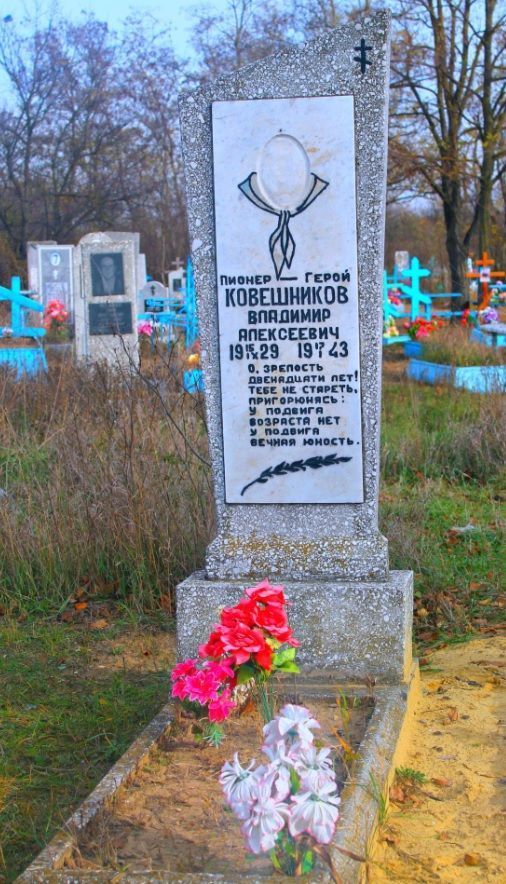 Предметом охраны объекта культурного наследия регионального значения «Могила пионера В. Кавешникова» (далее – памятник) является:Захоронение (могила) в полном объеме от поверхности земли, включая сопровождавшие захоронения материалы;Архитектурно-композиционное решение памятника: Открытая гробница;Низкий кубообразный подиум;Вертикальная трапециевидная стела со срезанным верхом; на лицевой стороне стелы – накладная плита из белого мрамора с выгравированной надписью: «Пионер – Герой КОВЕШНИКОВ ВЛАДИМИР АЛЕКСЕЕВИЧ 1929.IX.15-1943.I.17. О, зрелость двенадцати лет! Тебе не стареть, пригорюнясь: у подвига возраста нет у подвига вечная юность»; вверху над текстом – овальное углубление для фотографии, нижняя часть овала в обрамлении пионерского галстука, под текстом лавровая ветвь, в верхнем правом углу стелы – изображение православного креста.Гробница, подиум и стела выполнены из мрамора.Территория захоронения не ограждена, могила находится в ряду прочих захоронений.