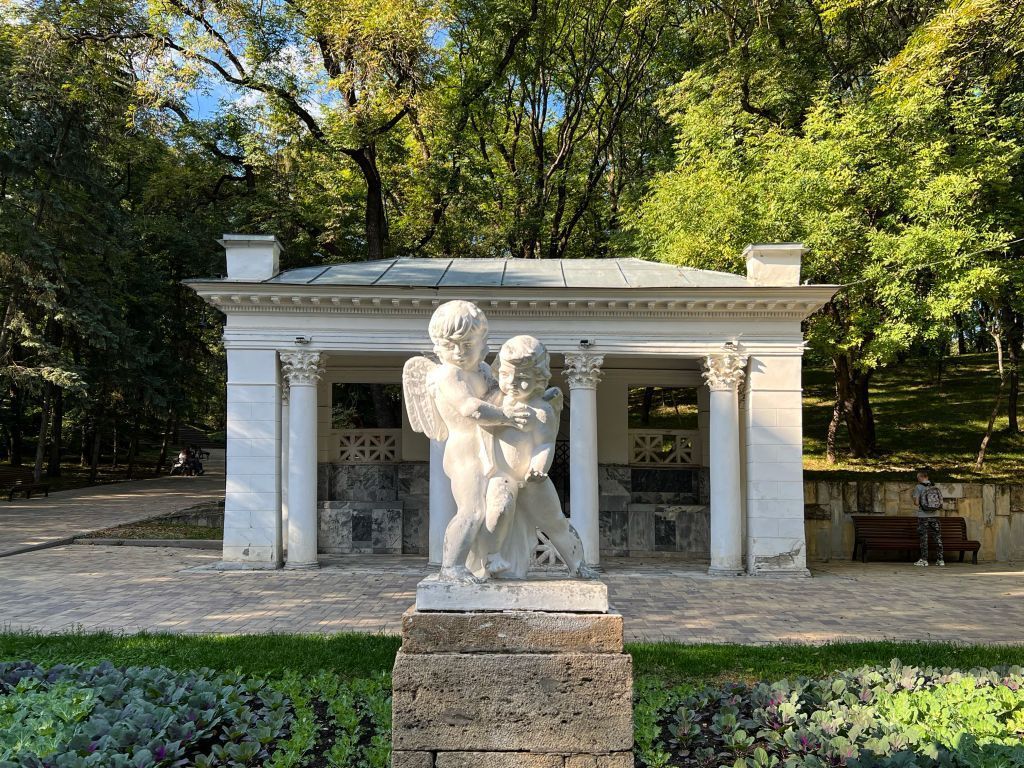 ПРЕДМЕТ ОХРАНЫобъекта культурного наследия регионального значения «Cкульптура«Борющиеся купидоны», начало ХХ века, расположенного по адресу:Ставропольский край, г. Ессентуки, Лечебный паркПредметом охраны объекта культурного наследия региональногозначения «Cкульптура «Борющиеся купидоны», начало ХХ века,расположенного по адресу: Ставропольский край, г. Ессентуки, Лечебныйпарк (далее — памятник), являются следующие его составляющие:№п/п Описание предмета охраны Изображение предмета охраны1. Градостроительная ценность,включающая местоположение иградостроительно-средовуюзначимость памятникаместоположение:- скульптура «Борющиесякупидоны» расположена вкурортной зоне центральной частигорода Ессентуки, в Курортномпарке на расстоянии около 360метров от западной границы парка(ул. Интернациональная) и нарасстоянии примерно 200 метровот южной границы (ул. Фрунзе).- установлено перед главнымфасадом бювета №3 минеральногоисточника №4.Градостроительно-средоваязначимость:- скульптура участвует вформировании планировочнойсхемы и облика Курортного паркав курортной зоне города с началаXX в., в сохраненииисторического городскоголандшафта фрагментаисторического района;Ситуационный план.Выкопировка из спутниковой съемки Google карт.Исследуемый памятник обозначен красным цветом.2023 г.- сохраняет визуальные связи вокружении объектов культурногонаследия, беспрепятственноевизуальное восприятие объекта всложившейся историческойпланировочной схеме парка;- объемно-пространственнаякомпозиция объекта культурногонаследия сохранила историческуютерриторию в историческихграницах;- создает и сохраняет общуюкомпозиционно-пространственнуюпланировочную структуруцентрального Курортного парка,сохраняет градостроительно-средовую значимость.2. Планировочная структура,габариты и силуэт памятника.Выкопировка из спутниковой съемки 2ГИС.Исследуемый памятник обозначен краснымцветом.3. О бъе мно-прос транс тве ннаякомпозиция, характер иматериал отделки памятника,нач. XX в.:- скульптура установлена навысоком постаменте размерами0,85 м х 0,68 м, высотой 1,2м.Представляет собой монумент,каркас которого отлит изалюминия, высотой 1,2 м,сюжетно представленныйдвумя борющимисякупидонами;- местоположение, габариты,высотные и планировочныеотметки, а также силуэтобъемно-пространственнойкомпозиции историческогообъема скульптуры, наквадратном стилобате, включаяквадратный в плане пьедестал;- тематика, композиция,техника исполнения иматериалы скульптуры;- местоположение, габариты,планировочные отметкиплощадки перед скульптурой;- местоположение, габаритыцветника, устроенного вокругскульптуры.Материалы:- высокий постамент размерами0,85 м х 0,6 8м высотой 1,2мвыполнен из пиленых блоковтравертина;- каркас основного объемаскульптуры высотой 1,2 мотлит из алюминия,скульптурная композицияокрашена в белый цвет;- особенности обработкиповерхности скульптуры,пьедестала и стилобата;Примечание: предмет охраны может быть уточнен при проведении обязательныхкомплексных научных исследований во время работ по сохранению объекта культурногонаследия.