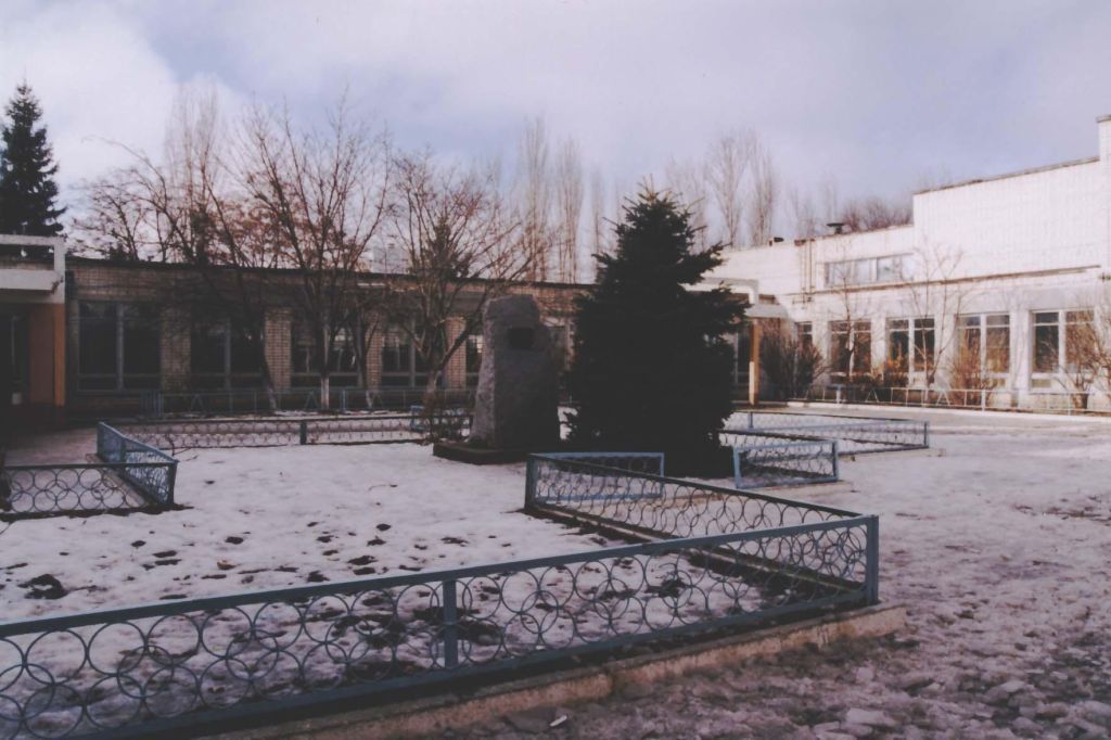 Памятный знак - гранитный камень с памятной табличкой на нем: «Здание школы заложено участниками XIII краевого традиционного молодежного праздника "Слава труду" 25 августа 1977 г.»