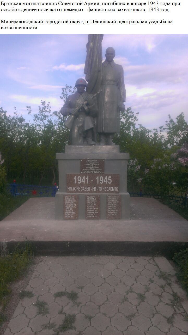 Братская могила воинов Советской Армии, погибших в январе 1943 года при освобождении поселка от немецко-фашистских захватчиков