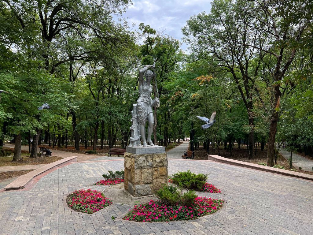Градостроительная ценность,включающая местоположение иградостроительно-средовуюзначимость памятникаместоположение:- скульптура «Раненая амазонка»установлена на расстоянии около85 метров от входа в Лечебныйпарк с Привокзальной площади. Сюжной стороны от объектапролегает улицаИнтернациональная.Градостроительно-средоваязначимость:- скульптура участвует вформировании планировочнойсхемы и облика Курортного паркав курортной зоне города с началаXX в., в сохраненииисторического городскоголандшафта фрагментаисторического района;- сохраняет визуальные связи вокружении объектов культурногонаследия, беспрепятственноевизуальное восприятие памятникав сложившейся историческойпланировочной схеме парка;Ситуационный план.Выкопировка из спутниковой съемки Google карт.Исследуемый памятник обозначен красным цветом.2023 г.- объемно-пространственнаякомпозиция объекта культурногонаследия сохранила историческуютерриторию в историческихграницах;- создает и сохраняет общуюкомпозиционно-пространственнуюпланировочную структуруцентрального Курортного парка,сохраняет градостроительно-средовую значимость.2. Планировочная структура,габариты и силуэт объекта.Выкопировка из спутниковой съемки 2ГИС.Исследуемый памятник обозначен краснымцветом.3. О бъе мно-прос транс тве ннаякомпозиция, характер иматериал отделки памятникакультурного наследия, нач. XXв.:- скульптура установлена навысоком постаментеквадратном в плане размерами0,8м х 0,8м х 1м. Представляетсобой монумент высотой 1,93м, отлитый из бетона, сюжетноизображающий персонажаж е н щ и н ы - в о и т е л ь н и ц ы ,известного в мифологии какамазонка;- воительница изображена вкоротком хитоне, раненой вправую грудь. Правая рукавысоко поднята над головой иудерживает лук, левая рукаопущена на пояс сзакрепленным колчаном сострелами. Наклон и поворотголовы амазонки вправо несоответствует общемудвижению скульптуры. Леваянога слегка выдвинута вперед.Изгиб правой руки и правыйконтур фигуры образуюправильный удлиненныйчетырехугольник, в рамукоторого оказываетсявписанной вся фигура;- местоположение, габариты,высотные и планировочныеотметки, а также силуэтобъемно-пространственнойкомпозиции историческогообъема скульптуры, набетонном квадратном стилобатевысотой 0,15 м;- тематика, композиция,техника исполнения иматериалы скульптуры;- местоположение, габаритыцветника, устроенного вокругскульптуры.Материалы:- квадратный в плане постаментоблицован натуральным камнемдоломитом;- материал исполнениястилобата – бетон;- основной объем скульптурывысотой 1,93 м отлит из бетона;- особенности обработкиповерхности скульптуры,пьедестала и стилобата;- характер историческогоокраса скульптурнойкомпозиции (белый цвет).Примечание: предмет охраны может быть уточнен при проведении обязательныхкомплексных научных исследований во время работ по сохранению объекта культурногонаследия.