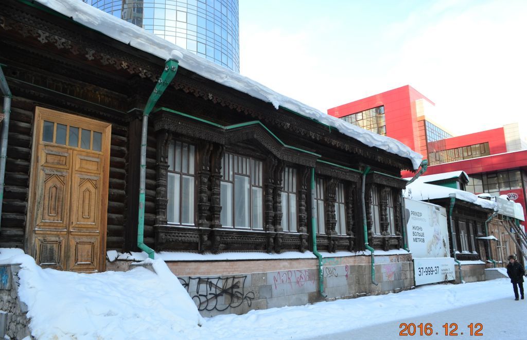 Предметом охраны объекта культурного наследия (далее – ансамбль) являются:1) состав ансамбля: полукаменный дом, украшенный деревянной резьбой, флигель, украшенный деревянной резьбой, торговая лавка в кирпичном стиле, ворота;2) месторасположение памятников «полукаменный дом, украшенный деревянной резьбой», «флигель, украшенный деревянной резьбой», «торговая лавка в кирпичном стиле», «ворота»;3) объемно-планировочная структура ансамбля на второе десятилетие ХХ века: габариты в капитальных стенах, пропорциональные соотношения высот.2. Предметом охраны памятника «Полукаменный дом, украшенный деревянной резьбой», входящего в состав ансамбля, являются: 1) объемно-планировочное решение одноэтажного деревянного здания на высоком цоколе с двумя гранеными шатровыми куполками на второе десятилетие ХХ века: конфигурация плана близкая к Г-образной, габариты объема, включая всю высоту и этажность;2) габариты и расположение капитальных кирпичных и бревенчатых стен на второе десятилетие ХХ века;3) строительные материалы фундамента (бутовый), капитальных стен цоколя (бут, гранитные блоки и кирпичная кладка), стены сруба (бревенчатые, с соединением «в лапу»);4) форма крыши (многоскатная), тип материала (металл) на второе десятилетие ХХ века; 5) место расположения усеченных четырехскатных шатровых куполков (с прямыми и скругленными гранями) на второе десятилетие ХХ века; 6) стилевое решение в духе эклектики с элементами модерна; 7) композиционное решение всех фасадов (в том числе с ризалитами южного главного фасада) на второе десятилетие ХХ века; 8) членения и декор всех фасадов на второе десятилетие ХХ века (расположение, пропорции, профили, форма): сложный фриз, венчающий карниз с подзором, гладкие накладные доски; наличники с прямыми и треугольными сандриками на сдвоенных кронштейнах, увенчанных короной, с фигурной подоконной частью и боковыми резными балясинами; пропильная и глухая деревянная резьба фриза, подзоров, наличников; 9) наружные оконные проемы первого этажа на второе десятилетие ХХ века: количество, расположение, ритм (одинарные, сдвоенные, строенные, счетверенные), форма (прямоугольные, близкие к квадратным, вытянутые по вертикали, лучковые), размеры; 10) заполнения оконных проемов на второе десятилетие ХХ века: материал (дерево), рисунок переплета (двух- и трехчастные с вертикальной разбивкой и с многочастной верхней фрамугой на южном и восточном фасаде; Т-образный на северном и западном фасаде), тон наружной части оконных рам (темный); 11) наружные дверные проемы первого и цокольного этажей на второе десятилетие ХХ века: количество, расположение, форма (прямоугольные), размеры;12) входная группа южного фасада: расположение, форма дверей (двустворчатые прямоугольные), тип материала дверных створ (дерево);13) историческое местоположение деревянной террасы 1-го этажа с ограждением и крыльцом в угловой части дворового фасада, на второе десятилетие ХХ века, исключая кирпичные и дощатые конструкции пристройки второй половины ХХ века;14) комбинированный цоколь состоящий из: бутовой кладки, гранитных блоков (за исключением поздней закладки оконных проемов) и кирпичной кладки, материал (бут, гранит, кирпичная кладка), технология обработки (тесаный камень), рисунок, без оштукатуривания и окрашивания;15) открытый бревенчатый сруб стен первого э