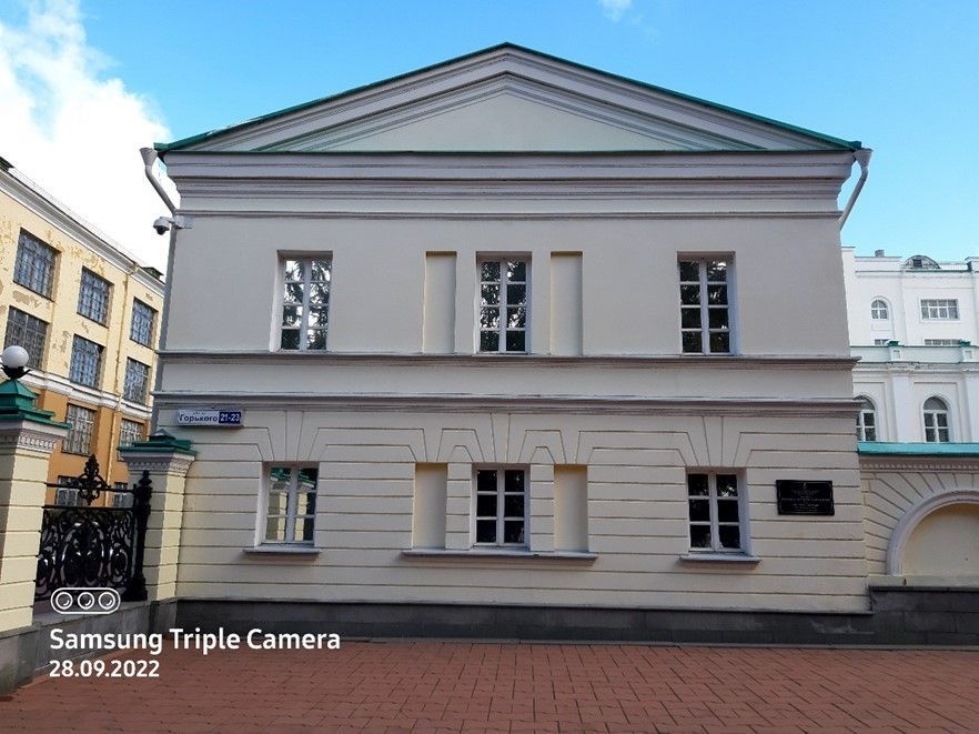 Предметом охраны объекта культурного наследия регионального значения «Флигель северный», входящего в состав ансамбля, является:1) историческое местоположение объекта в центральной части города на левом берегу городского пруда по красной линии ул. Горького;2) объемно-пространственное решение объекта в габаритах наружных капитальных стен на первую четверть XIX в. (двухэтажное здание);3) строительные материалы: фундамент (бутовый); капитальные стены (кирпичные);4) крыша воссозданная: форма над исторической частью (двускатная с полукруглыми слуховыми окнами на северном и южном скатах); тип материала кровли (металлический лист с фальцевым соединением);5) композиционно-стилистическое воссозданное решение фасадов в формах классицизма на первую четверть XIX в. (расположение, пропорции, форма и система членения):северный фасад: симметричная композиция в четыре оси оконных проемов, межэтажный и венчающий карнизы;западный фасад: симметричная центрально-осевая трехчастная композиция в три оси проемов, межэтажный и венчающий карнизы, фронтон;южный фасад: несимметричная композиция в пять осей оконных проемов, межэтажный и венчающий карнизы;6) все виды архитектурно-декоративных элементов северного, западного и южного фасадов (расположение, пропорции, профили, форма, рисунок и материалы): все виды карнизов, тянутых подоконных полочек, ниш;7) формы и размеры исторических оконных проемов северного, западного и южного фасадов;8) все виды воссозданных исторических оконных заполнений (пропорции, размеры, форма, ячеистый рисунок, цвет и тип материала (дерево);9) тип отделки северного, западного и южного фасадов (штукатурка с колерной окраской с выделением элементов декора белым цветом; штукатурка с расшивкой «под руст» и с имитацией клинчатого камня в уровне 1 этажа).