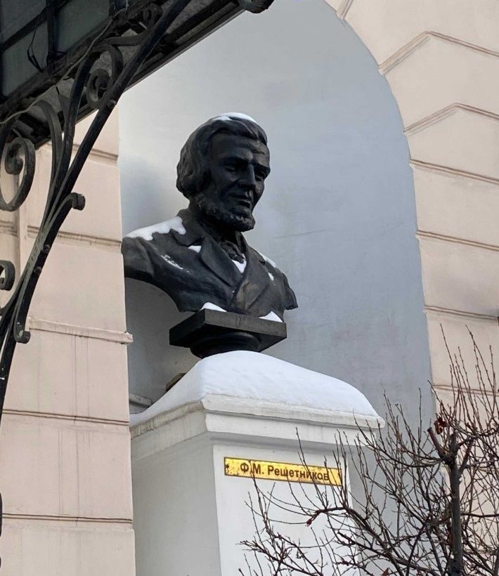Предметом охраны объекта культурного наследия регионального значения «Бюст Ф.М. Решетникова» является: 1) расположение в уровне первого этажа западного фасада в полуциркульной нише над цокольной частью здания, справа от главного входа объекта культурного наследия регионального значения «Первая городская публичная библиотека им. В.Г. Белинского», расположенного по адресу: Свердловская область, г. Екатеринбург, ул. Карла Либкнехта, д. 8;2) архитектурно-композиционное решение: бюст на постаменте; габариты, включая все высотные отметки;3) конструктивные элементы: бюст: скульптурное трехмерное оплечное изображение Ф.М. Решетникова на профилированном основании; пластическое решение и художественные особенности бюста, выполненного в традициях реализма; материал (чугун); технология изготовления (литье); окраска бюста и основания черным цветом;постамент: форма (вертикальный прямоугольный в плане объем с трехскатной ступенчатой плитой в завершении, установленный на невысоком цоколе с профилированным кордоном).