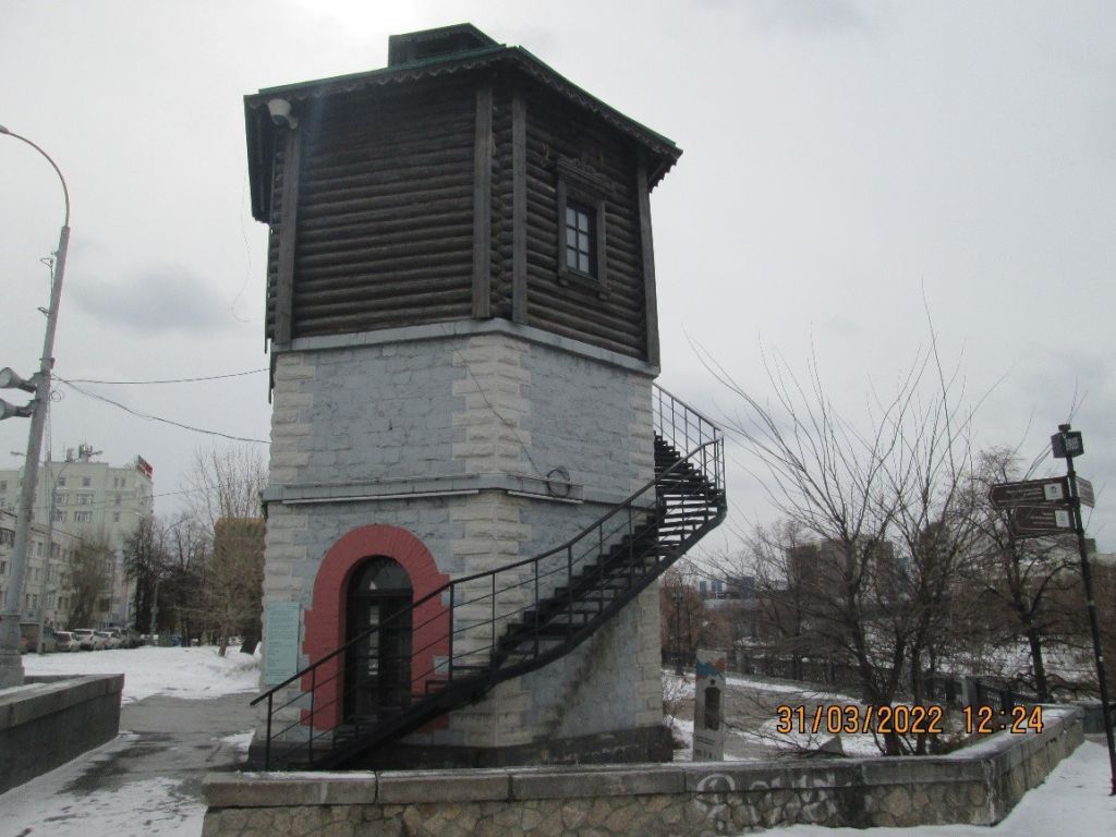 Предметом охраны объекта культурного наследия федерального значения «Водонапорная башня», входящего в состав ансамбля, является:1) месторасположение на территории ансамбля;2) объемно-планировочное решение: шестигранное в плане сооружение на невысоком выступающем цоколе; габариты, включая всю высоту и этажность (двухэтажное);3) материалы: фундамент (бутовый ленточный); стены первого этажа (тесаные гранитные блоки, уложенные с перевязкой); стены второго этажа (брёвна, уложенные «в лапу»); цоколь (гранитные блоки);4) крыша: форма башни и фонаря (шестискатная); материал кровли (фальцевое покрытие из кровельного железа); 5) фонарь с деревянными жалюзийными решётками и пропильными подзорами;6) исторические дверные и оконные проемы (количество, расположение, размеры и форма (с арочным и прямоугольным завершением);7) многочастный рисунок оконных заполнений;8) декоративное убранство фасадов: накладные наличники окон второго этажа; пропильные подзоры; пояса из тесаных гранитных блоков;9) клинчатые арочные кирпичные перемычки.