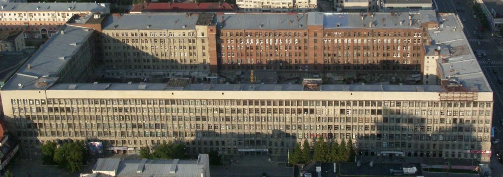 Предметом охраны объекта культурного наследия федерального значения «Дом промышленности» является:1) расположение объекта культурного наследия в пространстве квартала между улицами Мамина-Сибиряка, Малышева, Луначарского и проспектом Ленина;2) объемно-планировочное решение в пределах исторических капитальных стен: прямоугольная конфигурация плана с внутренним двором; габариты, включая всю высоту; количество этажей (семиэтажный с подвалом и цокольным этажом на южном уличном фасаде);3) строительные материалы и конструкции: фундамент (бутобетонный, железобетонные блоки); капитальные стены (кирпичные); колонны (кирпичные, сборные железобетонные); 4) крыша: форма (многоскатная); тип кровли (гладкий металлический лист с фальцевым соединением); исторические высотные отметки; 5) все виды композиционного и архитектурно-декоративного убранства уличных фасадов (расположение, размеры, пропорции, профили, форма, рисунок декора и материал): плоскостное решение сочетаний горизонталей и вертикалей (линия высокого цокольного этажа, лента аттика, плоскости в виде слабо выраженных ризалитов и простенки окон в виде выступающих лопаток); овальные в плане опоры входных групп на западном уличном фасаде; межэтажные ступенчатые карнизы;6) вид отделки уличных фасадов: стены оштукатурены;7) все виды арочных кирпичных перемычек;8) все виды исторических наружных дверных (в том числе въездные арки со стороны северного и южного уличных фасадов) и оконных проемов и ниш (местоположение, размеры и форма (с прямым и арочным завершениями); 9) все виды оконных заполнений (форма, рисунок (многочастный) и цвет (темный тон на внешней стороне);10) все виды декоративного убранства интерьеров (расположение, размеры, профили и материал): все виды лепного декора, в котором сочетаются растительные мотивы и имитация ордерных элементов с советской символикой; профилированные потолочные и настенные карнизы; розетки; колонны и пилястры, отделанные мрамором, в вестибюлях 1 этажа и холлах лестничных клеток; стеновые панно с барельефами, отражающие труд и спорт советского человека – в вестибюлях, над входами в лифты и в коридорах 5-7 этажей; скульптура В.И. Ленина на постаменте в вестибюле 1 этажа; бюст С. Орджоникидзе на постаменте на лестничной клетке 4 этажа;11) расположение лифтов и лестничных клеток.