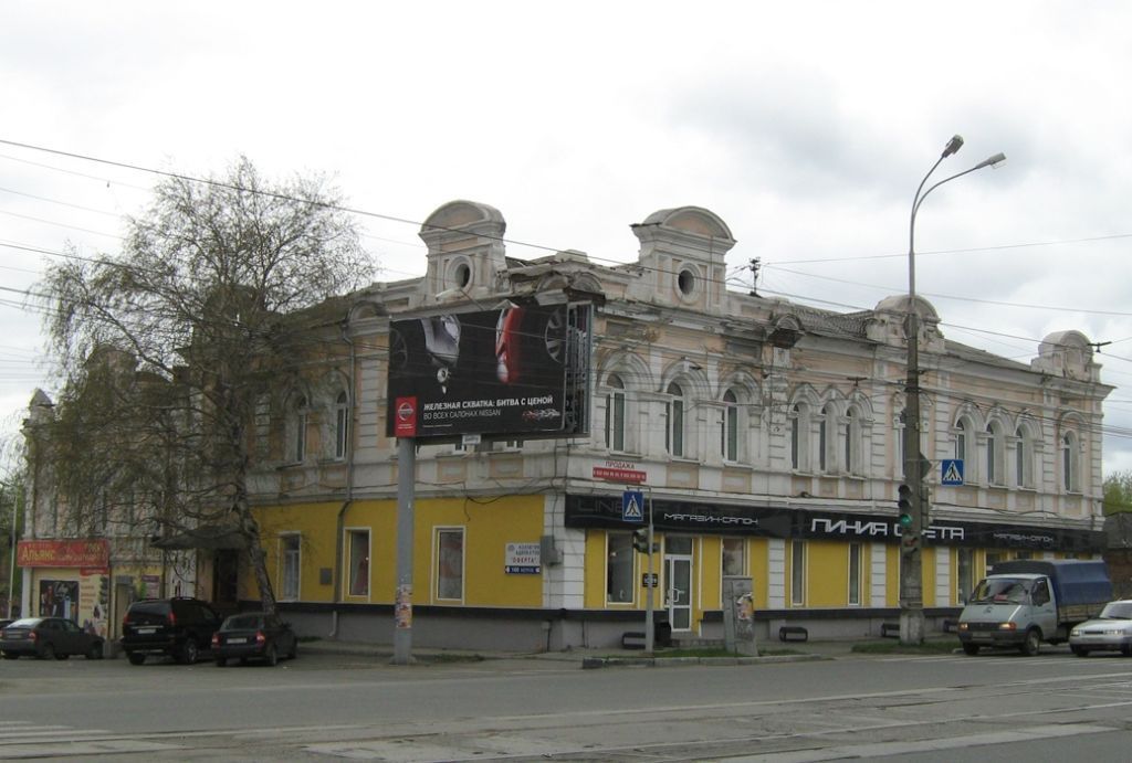 Предметом охраны объекта культурного наследия являются:1) градостроительная характеристика: угловое положение здания в квартале, угол ориентирован на Комсомольский сквер; по красной линии оформляет перекрёсток пр. Ленина и ул. Огаркова;2) объёмно-пространственная структура: «Г» – образное в плане, в границах капитальных кирпичных стен на начало ХХ века, состоит из двух объёмов: литер А, Б; двухэтажное «Г» – образное с подвалом, на бутовом фундаменте (литер А); прямоугольное в плане, двухэтажное, кирпичное без подвала (литер Б), «южный пристрой» к южному торцевому фасаду основного здания (литер А); построен до 1917 года;3) стилистика: эклектика;4) архитектурно-художественное оформление фасадов: декоративное оформление второго этажа с завершением по кровле уличных фасадов: северного, восточного и южного торцевого; северный фасад по красной линии проспекта Ленина – пятичастный с тремя венчающими аттиками; восточный фасад здания (литер А), по улице Огаркова – трёхчастный с двумя венчающими аттиками; восточный и южный торцевой фасады южного пристроя (литер Б) имеют по одному аттику; аттики разновеликие, фланкированы парапетными столбиками, имеют общее решение в центральной части: полуциркульное завершение, с круглым окном в тимпане; рустованные пилястры с раскрепованным завершением; сандрики арочной формы над оконными проёмами в малых ризалитах северного фасада (литер А); полукруглые колонны, фланкирующие оконные проёмы в малых ризалитах северного фасада (литер А); междуоконные лопатки; подоконныеи надоконные филёнки; междуэтажный профилированный карниз; профилированный карниз небольшого выноса на завершении фасада; фрагмент ажурной решетки карниза между парапетными столбиками; крыльцо восточного фасада с металлическим козырьком и ажурными коваными кронштейнами и решёткой по карнизу крыльца;5) интерьер: деревянный тамбур с филёнчатыми двустворчатыми внутренними дверями; лестница на второй этаж восточного фасада (литер А) с металлическим ажурным ограждением и перилами; два портала дверного проема в поперечной стене 2 этажа (литер А);6) окна и двери: оконные проёмы второго этажа с арочным завершением, архивольтом и имитацией замкового камня уличных фасадов – северного, восточного и южного торцевого (литер А, Б); круглые окна в тимпане аттика с профилированным рамочным наличником; окна прямоугольной формы первого этажа северного фасада; окна прямоугольные с лучковым завершением второго этажа южного и западного дворовых фасадов (литер А) южного и восточного первого этажа (литер Б);7) крыша: форма – скатная, вальмовая; материал кровли – металл.