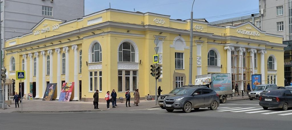 Предметом охраны объекта культурного наследия является: 1) объемно-планировочное решение в габаритах капитальных стен на период начала ХХ в.: двухэтажный кирпичный объем сложной конфигурации;2) композиция восточного и южного фасадов на период начала ХХ в., включая ризалиты и портики;3) декоративное убранство восточного и южного фасадов периода начала ХХ в.: профилированные карнизы; лепные венки и розетки; лепной растительный орнамент; маскароны; замковые камни; сандрики с кронштейнами; декорированные архивольты; барельефы с грифонами; колонны и полуколонны ионического ордера с каннелированной поверхностью; карнизные сухарики; лепной линейный орнамент аттиков южных ризалитов; треугольные аттики;4) оконные и дверные проемы на период начала ХХ в.: количество; форма (арочная и прямоугольная); размеры; расположение; рисунок оконных переплетов;5) интерьеры вестибюля главного входа и двухсветного фойе зрительного зала: оформление плоским рельефом потолочных кессонов вестибюля и боковых галерей фойе; декор порталов вестибюля и фойе; вазоны; ионические колонны; настенные филенки; лепные венки над дверными проемами; потолочные розетки и тяги; люстра фойе середины ХХ в.; балюстрада верхней галереи фойе.