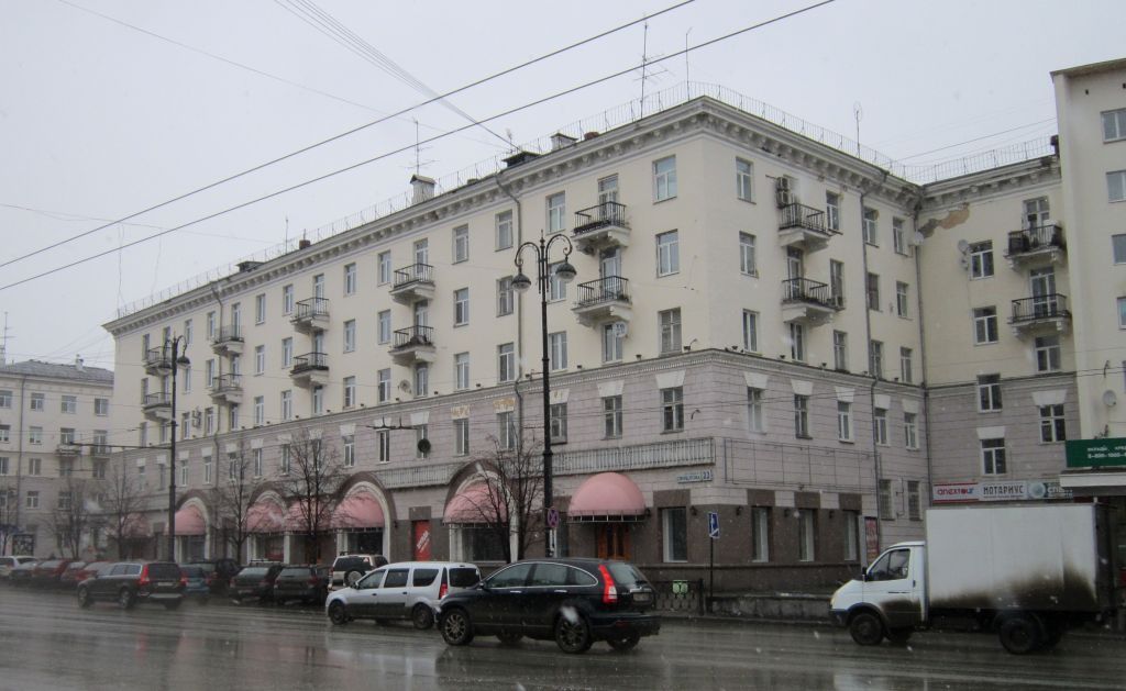 Предметом охраны объекта культурного наследия, входящего в состав ансамбля, является:1)объемно-планировочная композиция здания на 1958 год: пятиэтажный с подвалом кирпичный объем, сложный в плане;2)секционная планировка второго - пятого жилых этажей;3)крыша: форма многоскатная; исторические высотные отметки;4)композиционное решение всех фасадов в стилевых формах «советской неоклассики;5)историческое декоративное убранство фасадов (расположение, пропорции, профили и форма): кордон цоколя в виде валика; междуэтажный и венчающий профилированные карнизы; сухарики и акант междуэтажного карниза на уличных фасадах; модульоны и кессоны венчающего карниза уличных фасадов; руст первого- второго этажей уличных фасадов; штукатурные замковые камни над окнами второго этажа уличных фасадов; архивольты арочных витринных проемов, украшенные лепным растительным декором; лепной декор балконных кронштейнов;6)вид отделки: гладкая штукатурка с колерной покраской стен; рустованная обработка поверхности с колерной покраской стен первого-второго этажей уличных фасадов;7)балконы с металлическим ограждением (расположение, материал, габариты, форма и рисунок ограждения);8)исторические оконные и наружные дверные проемы (расположение, габариты и форма);9)сохранившиеся элементы интерьерного убранства помещения бывших железнодорожных касс на первом этаже: лепные карнизные детали.