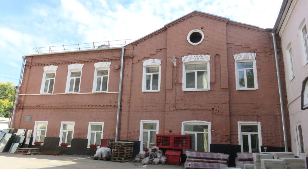 Предметом охраны объекта культурного наследия, входящего в состав ансамбля, является:1)расположение в глубине ансамбля;2)объемно-планировочное решение: прямоугольная конфигурация плана; габариты, включая всю высоту и этажность (двухэтажное);3)материалы на 1903 год: фундамент (бутовый); цоколь и капитальные стены (кирпичные);4)крыша: форма (многоскатная); тип материала кровли (гладкий металл);5)стилевое решение фасадов в духе эклектики в формах «кирпичного стиля» на 1903 год;6)композиционное решение фасадов на 1903 год;7)декоративное оформление фасадов на 1903 год (расположение, пропорции, профили, форма и рисунок): венчающий карниз; гладкий фриз с сухариками; межэтажный пояс с сухариками; венчающий карниз фронтонов с сухариками; кордон цоколя; гладкие и висячие лопатки; ступенчатые рельефы второго этажа западного фасада; центральные ризалиты и щипцовые фронтоны западного и восточного фасадов; обрамление круглого окна в тимпане западного фронтона;8)наружные оконные проемы на 1903 год (количество, расположение, форма (с прямым и лучковым завершениями) и размеры);9)исторический рисунок и цвет оконных заполнений;10)открытая кирпичная кладка фасадов с использованием фигурного * кирпича без окраски;11)габариты помещения лестницы;12)фигурное металлическое ограждение и ступени лестницы (расположение, материал (гранит и металл), форма, размеры и рисунок);13)опоры центрального зального помещения первого этажа (расположение, материал и форма).