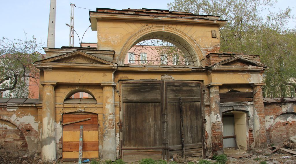 Предметом охраны объекта культурного наследия, входящего в состав ансамбля, является:1)расположение объекта культурного наследия по красной линии улицы Розы Люксембург с северной стороны от главного дома усадьбы;2)трехчастная центрально-осевая композиция ворот, состоящая из центральной повышенной части (проезд), фланкированная с двух сторон пониженными объемами калиток; центральная часть увенчана ступенчатым аттиком, в который вписана полуциркульная арка; калитки выделены двухколонными портиками дорического ордера; колонны поддерживают гладкий антаблемент, увенчанный треугольным фронтоном и ступенчатым аттиком, с полуциркульными арками над проемами калиток;3)проемы (расположение, количество, габариты и форма (прямоугольный проем ворот; калитки с лучковым завершением);4)вид отделки фасадов ворот и ограды: гладкая оштукатуренная поверхность с окраской светлым колером;5)декоративное убранство ворот и ограды (уличный и дворовой фасады) (расположение, пропорции, профили, форма, рисунок и материал):ворота: колонны и пилястры дорического ордера, украшенные «ложчатым декором»; руст; профилированные карнизы и пояски; плоские кессоны внутренней поверхности центральной арки; профилированный архивольт центральной арки; замковые камни над проемами калиток;ограда: полуциркульные ниши; замковые камни над нишами; рустованнаяобработка стены и профилированный карниз;6)металлическое ажурное заполнение центральной полуциркульной арки;7)покрытие ворот и ограды: форма (многоскатная); тип материала (гладкий металл).