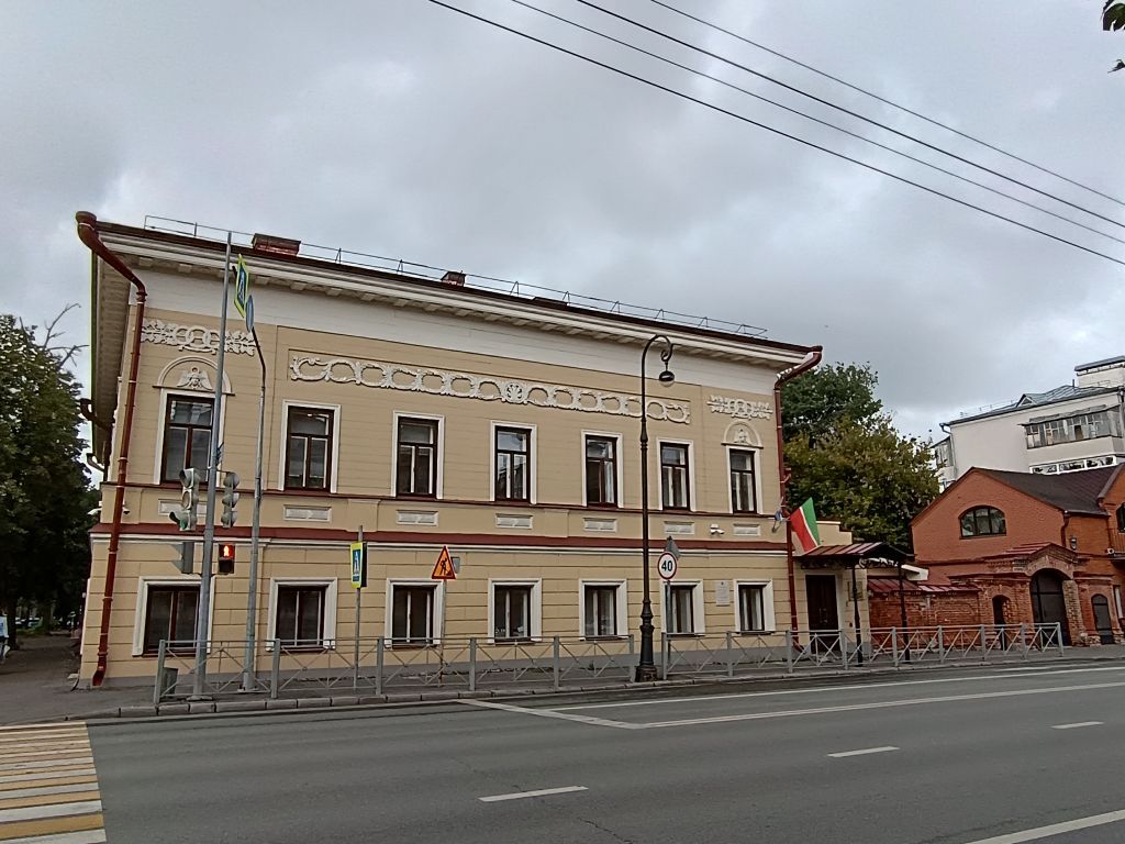 Местоположение, градостроительные и композиционные характеристики объекта в структуре исторического поселения г. Казань, по красной линии застройки улиц К.Маркса и Гоголя (закрепляющий угол застройки на пересечении улиц), территория домовладения в сложившихся границах; - Объемно-пространственная композиция двухэтажного здания с подвалом и антресолями, Гобразное в плане с выступающей со стороны двора двухэтажной меньшей по по высоте частью; трехчастные арочные ворота по ул. Карла Маркса с проездом и двумя калитками по обе стороны от него, кирпичное ограждение по красной линии ул. К.Маркса и проездные ворота по ул.Гоголя с деревянным заполнением;- Конструктивная схема: конструкция и материал капитальных стен кирпичные стены первого этажа здания; бревенчатые стены второго и антресольного этажей; кирпичные стены второго и антресольного этажей южного крыла здания), перекрытия: своды с распалубками подвала и первого этажа, плоские перекрытия; кирпичные перемычки; конструктивное решение стропильной крыши;- Сложная конфигурация, геометрия и габариты крыши здания, материал кровельного покрытия - листовое железо; исторические габариты и конфигурация дымоходных труб печей; слуховые окна;- Композиционное решение и архитектурное оформление фасадов здания:- фасад по ул. К. Маркса - симметричная трехчастная композиция основного двухэтажного объема фасада в семь оконных осей, раскрепованного симметрично по флангам в одну оконную ось с одноэтажным пристроем, примыкающим справа, с дверным проемом; рустованная оштукатуренная и окрашенная поверхность стены по первому этажу, обшивка окрашенными досками по горизонтали по второму этажу; междуэтажный профильный карниз; профилированные наличники оконных проемов первого этажа; профилированные деревянные наличники оконных проемов второго этажа; подоконные соединительные тяги окон второго этажа; прямоугольные филенки в подоконной плоскости второго этажа; полуциркульные сандрики во фланговых оконных проемах второго этажа, в тимпане которых расположены резные маскароны «головы херувимов»; резной орнамент в виде лавровых венков и гирлянд виноградных лоз над сандриками второго этажа в раскрепованных частях; лента растительного орнамента в длинной прямоугольной филенке (утрачена) над 5-ю центральными оконными осями второго этажа; венчающая часть под кровельного карниза большого выноса, декорированная триглифами и розетками; металлические декоративные флагштоки (утрачены) в междуоконных простенках первого и второго этажей. Металлический декоративный навес на столбах с треугольным фронтоном (утрачен).- фасад по ул. Гоголя: ассимметричная композиция двухэтажного объема фасада в девять оконных осей, раскрепованноrо в центральной части основного объема фасада с тройным окном по первому этажу и с широким трехчастным оконным проемом над ним по второму этажу; рустованная оштукатуренная и окрашенная поверхность стены по первому этажу, обшивка окрашенными досками по горизонтали основного объема фасада по второму этажу; гладкая оштукатуренная и окрашенная поверхность стены по второму этажу южного крыла здания; профилированные наличники оконных проемов первого этажа, профилированные деревянные наличники оконных проемов второго этажа; оконные проемы антресольного этажа без деко