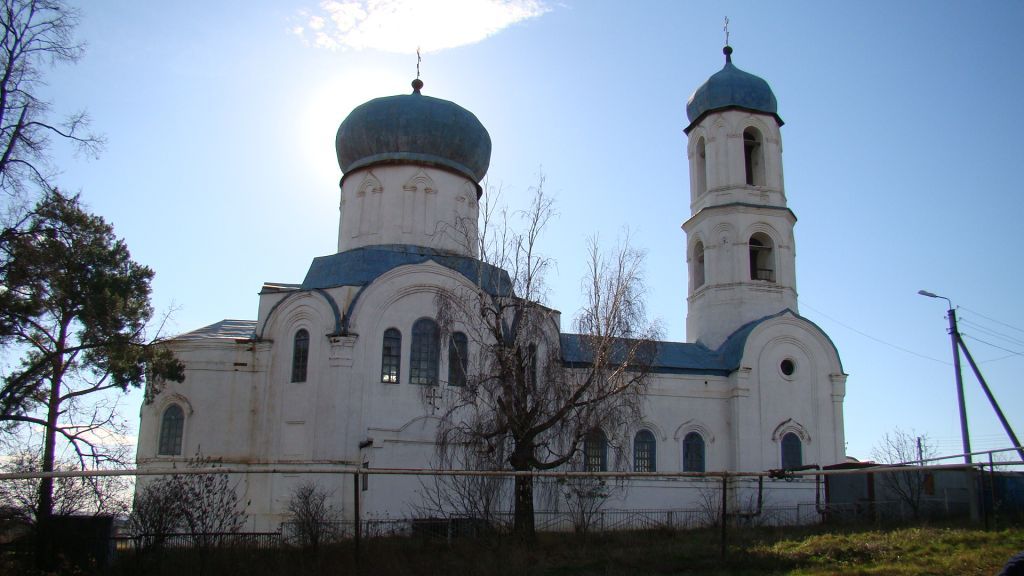 местоположение объекта: на окраине сельской застройки на открытой площадке с небольшим уклоном рельефа на северо-восток, является архитектурно исторической доминантой застройки села, территория в сложившихся границах; объёмно-пространственная композиция: симметрично-осевая композиционная структура однопрестольного бесстолпного храма на высоком цокольном основании, состоящего из массивного центрального восьмерика храма с переходящим по высоте восьмигранным покрытием с цилиндрическими завершениями над каждой аркой-закомарой северного, южного и восточного фасадов, в глухой цилиндрический барабан под массивной главкой луковичной формы с крестом и подкрестовым яблоком на шейке, трёхъярусной прямоугольной в плане колокольни с нижним четвериком в обработке с трёх сторон позакомарным цилиндрическим покрытием с круглыми люкарнами и двумя разновеликими восьмигранными ярусами звона со сквозными арочными проёмами по сторонам света под крупной гранёной главкой с крестом и подкрестовым яблоком на шейке, соединительного небольшого одноэтажного объёма трапезной в три оконных проёма под двускатной крышей и полукруглой апсиды под конхой, вход через арочные дверные проёмы северного и южного фасадов храмового восьмерика с каменными крыльцами со ступенями и через притвор с полуциркульным дверным проёмом на западном фасаде нижнего яруса колокольни; конструктивное решение: основные габариты здания; облицовка цоколя известковыми плитами, сводчатые перекрытия, кирпичные перемычки, металлические и деревянные связи; объёмно-планировочное решение: анфиладное классическое расположение объёмов церкви; характер, геометрия и конструкция крыши: историческая конфигурация, габариты, геометрия и конструктивное решение скатной крыши апсиды, трапезной, крупной главки луковичной формы в завершении храмового восьмерика и восьмигранной главки колокольни с крестом и подкрестовым яблоком на шейке в завершении, материал кровли — листовое железо; архитектурное и декоративное убранство фасадов: пилястры в обрамлении углов храмового восьмерика и трёх ярусов колокольни, профилированные архивольты с опиранием на пилястры в обрамлении закомар с килевидными завершениями храмового восьмерика и нижнего яруса колокольни по трем сторонам света, полуциркульные ниши в обработке профилированных ступенчатых тяг, обрамляющие трёхчастные полуциркульные оконные проёмы и входные узлы на северном и южном фасадах и полуциркульный оконный проём и подоконную прямоугольную нишу на боковых гранях храмового восьмерика, полуциркульные ниши нижнего яруса колокольни, обрамляющие круглые токарны и полуциркульный оконный проём и нишу на северном и южном фасадах и над входным притвором с арочным дверным проёмом в обрамлении архивольта и плоских лопаток на западном фасаде нижнего яруса колокольни, прямоугольные вытянутые ниши между пилястрами по флангам западного фасада колокольни, полуциркульные оконные проёмы трапезной, апсиды и нижнего яруса колокольни в обрамлении профильных наличников и профилированных архивольтов с килевидными завершениями с опиранием на импосты, полуциркульные сквозные проёмы и ниши второго и третьего ярусов звона колокольни в обрамлении профилированных архивольтов с килевидными завершениями третьего яруса с опи