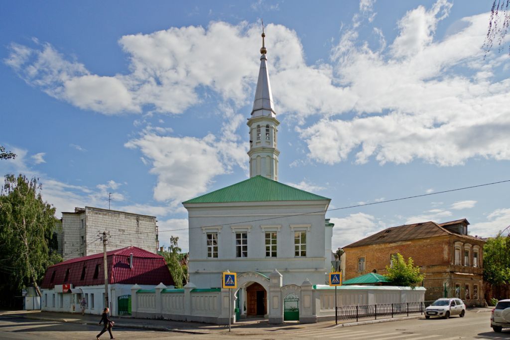-местоположение здания на пересечении двух улиц Нариманова и Фатиха Карима, его градостроительные характеристики доминанты, активно формирующей силуэт двух улиц района Старо-Татарской слободы, композиционно связанной с Юнусовской площадью, территория памятника в исторических границах, обнесенная кирпичной оградой по красной линии улиц с проездными воротами и калиткой;-объемно-пространственная структура двухэтажного кирпичного здания мечети, вытянутого с севера на юг с характерным перепадом рельефа (склон), Т-образного в плане, состоящего из основного прямоугольного объема под скатной валъмовой крышей с центральным расположением восьмигранного трехъярусного минарета под восьмигранным шатром (восстановлен) и с трехчастной осевой планировкой: вестибюльная часть с лестничным маршем, переходной зал и основной молельный зал, к которому с южного торца примыкает более поздний прямоугольный двухэтажный кирпичный объем пристроя (третий этаж современной надстройки) с полукруглым двухэтажным михрабом по центру южного фасада, главный вход расположен ро оси симметрии северного фасада мечети, глухая каменная ограда с пряслами между прямоугольных столбов обрамляет территорию по красным линиям улиц Фатиха Карима и Нариманова со стрельчатой подковообразной аркой проездных ворот и калиткой между прямоугольных столбов с коническими завершениями на пересечении улиц;- композиция и архитектурное решение фасадов: симметричная композиция северного фасада здания на пересечении двух улиц в четыре оконных оси по второму этажу и симметрично расположенными двумя оконными осями 1 этажа здания относительно главного входа по осевой линии, симметричная трехчастная композиция западного и восточного фасадов основного здания с вертикальным членением на пять неравных частей в три и одну оконную ось, горизонтальное двухъярусное поэтажное членение здания на два разновеликих яруса с более высоким вторым ярусом, местоположение, конфигурация и пропорция исторических оконных и дверных проемов; -конструктивная схема, подлинные кирпичные стены, кирпичные перемычки проемов, кирпичные своды в перекрытии 2 этажа, материал и конструктивное решение плоских перекрытий по деревянным балкам, каменная лестница, ведущая на минарет, во внутренней поперечной стене, местоположение и конфигурация внутренней лестницы;- историческая конфигурация, габариты и конструктивное решение скатной вальмовой крыши здания ( треугольные фронтоны с полукруглыми чердачными окнами в центре продольных фасадов утрачены), материал кровли-листовое железо;-отделка и архитектурные детали фасадов: гладкие оштукатуренные и окрашенные поверхности стен фасадов здания, плоские лопатки 1 и 2 этажа в простенках оконных проемов и ниш продольных фасадов, прямолинейные сандрики - полочки на фигурных поддерживающих кронштейнах над прямоугольными оконными проемами 2 этажа основного здания, полуциркульные ниши по оси симметрии 1 этажа западного и восточного фасадов, профильные подоконные окон 2 этажа и междуэтажные тяги по фасадам основного здания, завершающий антаблемент северного и западного фасадов из профилированного архитрава, плоского фриза и профилированного ступенчатого карниза небольшого выноса по трем фасадам основного здания;-декоративное убранство интерьеро