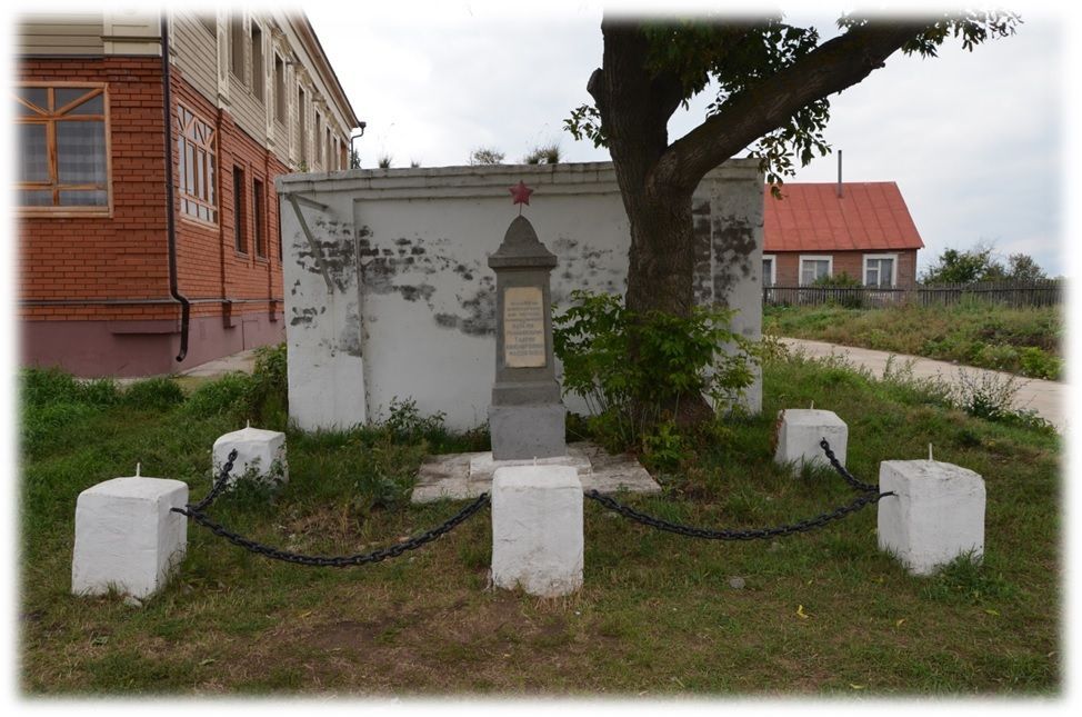 -местоположение объекта: стена расположена на улице Соборная с западной стороны Рождественской площади; территория в границах ограждения;-объёмно-пространственное решение: кирпичная стена с двумя плоскими лопатками по бокам и завершающаяся ступенчатым карнизом и небольшой бетонный обелиск с прямоугольным в плане ступенчатым основанием, и фигурным завершением с пятиконечной металлической звездой, расположенным на бетонной плите, с мемориальной доской с надписью: «Здесь в 1918 году белогвардейцами были расстреляны красноармейцы коммунисты Казанов Михаил Кузьмич, Тихонов Александр Тихонович, Фадеев Павел».