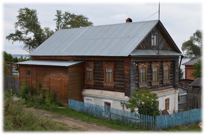-местоположение объекта: градостроительные и композиционные характеристики в структуре исторической застройки острова Свияжск (расположен на участке с небольшим уклоном, закрепляет красные линии застройки улиц Еленинская и Болотная), территория домовладения в сложившихся границах;-объёмно-пространственное решение: двухэтажное здание прямоугольной формы в плане; историческая конфигурация, геометрия и конструктивное решение крыши; конструктивная схема здания; подлинные кирпичные стены первого этажа; подлинные бревенчатые стены второго этажа, подлинные деревянные стены и перекрытия внутренних помещений;-архитектурное решение фасадов: стены первого этажа без штукатурной отделки; профилированные наличники окон первого этажа; лопатки в обрамлении углов первого этажа; ступенчатый кирпичный междуэтажный пояс; обшивка досками по горизонтали углов сруба; резные деревянные наличники оконных проёмов второго этажа и тимпана чердака; карнизы с пропильной орнаментальной резьбой; местоположение, конфигурация и пропорции исторических оконных и дверных проёмов, геометрия и материал заполнений оконных и дверных проёмов (материал — дерево); материал покрытия кровли (листовое железо);-декоративное убранство интерьеров: тянутые припотолочные карнизы по периметру помещений, прямоугольная печь без облицовки.