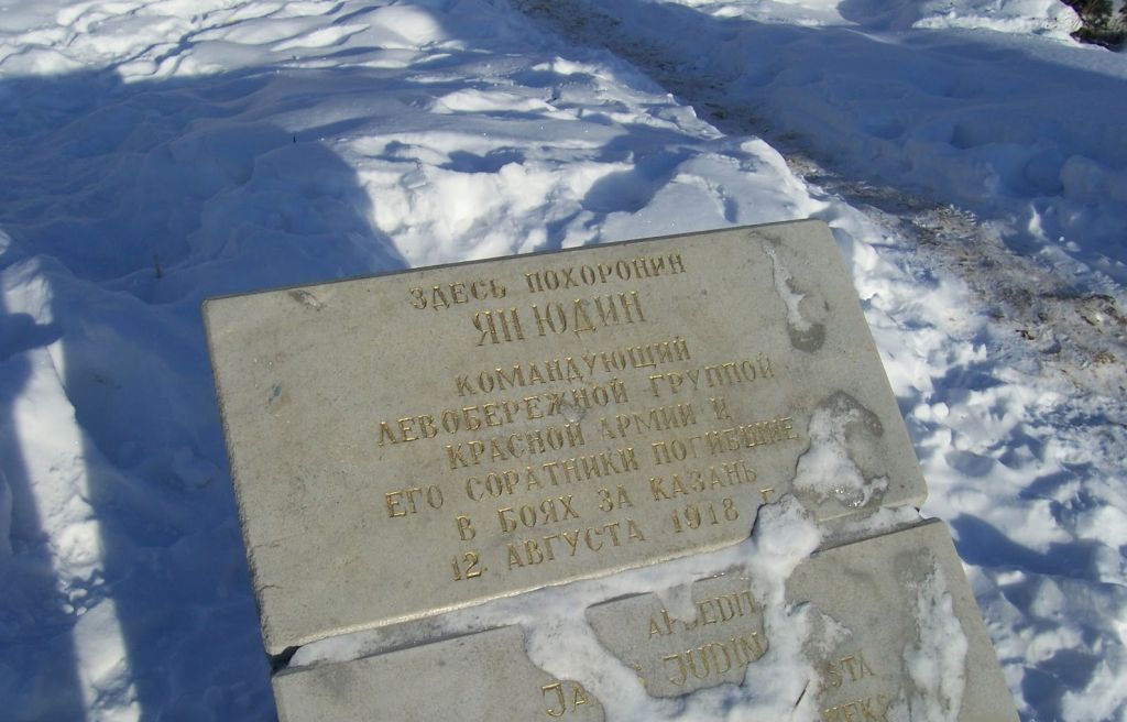 - существующее местоположение могилы на территории площади \"Аллея Славы” поселка Юдино города Казани;- захоронение (останки) герс›я гражданской войны Яна Андреевича Юдина;- текст мемориальной надписи: «Здесь похоронен ЯН ЮДИН командующий левобережной группой Красной армии и его соратники погибшие в боях за Казань 12 августа 1918 г.» на трех Языках;- обозначение захоронения надмогильным сооружением.