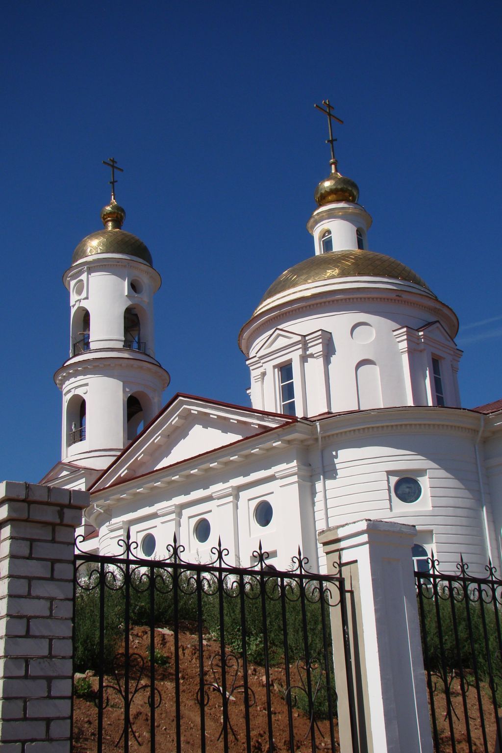 -местоположение здания на крутом берегу Волги, композиционные характеристики в структуре застройки (является архитектурной доминантой села); -объемно-пространственная и симметрично-осевая композиционная структура трех престольного двухсветного храма, где по главной оси здания следуют: двухсветный центральный объем храма со скругленными угловыми частями и классическими портиками с фронтонами по трем сторонам света и завершающий круглый барабан с портиками по сторонам света под сферическим куполом со световым барабаном и главкой, соединительный узкий шлюз между храмовой частью и колокольней и четырехъярусная колокольня с нижним сквозным четвериком, четверик второго яруса обрамлен плоскими портиками по сторонам света и цилиндрические два яруса с убывающими у верху объемами со сквозными проемами и резонаторами под сферическим куполом с маковкой на шейке в завершении;-объемно-планировочные и конструктивные особенности;-существующие габариты и общий абрис объемов храма; -архитектурный облик фасадов храма; -подлинные кирпичные стены, сводчатые кирпичные перекрытия, кирпичные перемычки, металлические связи;-историческая конфигурация, габариты, геометрия и конструктивное решение крыши храмовой части с треугольными фронтонами, полусферический каменный купол со световым барабаном и завершающая главка, сферический купол с маковкой колокольни, материал кровли (листовое железо);-отделка и архитектурные детали фасадов: гладкие без штукатурной отделки, побеленные поверхности стен фасадов церкви, три четырехпилястровых портика с треугольными фронтонами в завершении центрального объема храма, горизонтальная рустовка скругленных углов храмового объема, оконные и дверные проемы храмового объема в прямоугольных нишах арочной формы на уровне и круглой на 2 уровне, профилированные ступенчатые тяги с полосой подкарнизнх «гутт» в обрамлении фронтонов и в завершающем карнизе портиков, I и З ярусов колокольни, четыре ступенчатых портика в обрамлении пилястр с треугольными фронтонами в завершении, с круглыми и арочными нишами в простенках круглого барабана храмового объема, четыре плоских портика 2 яруса колокольни с полу циркульными проемами и круглыми нишами с треугольными фронтонами в завершении, полуциркульные арочные проемы с полуциркульными нишами над ними в обрамлении спаренных угловых пилястр, поддерживающих плоский архитрав стрех сторон I яруса колокольни, арочные проемы в прямоугольных нишах с замковыми камнями З и 4 ярусов, круглые резонаторы в прямоугольном профильном обрамлении 4 яруса колокольни; -местоположение и конфигурация оконных и дверных проемов в первоначальных габаритах, первоначальная конструкция, геометрия и материал (дерево) проемов.