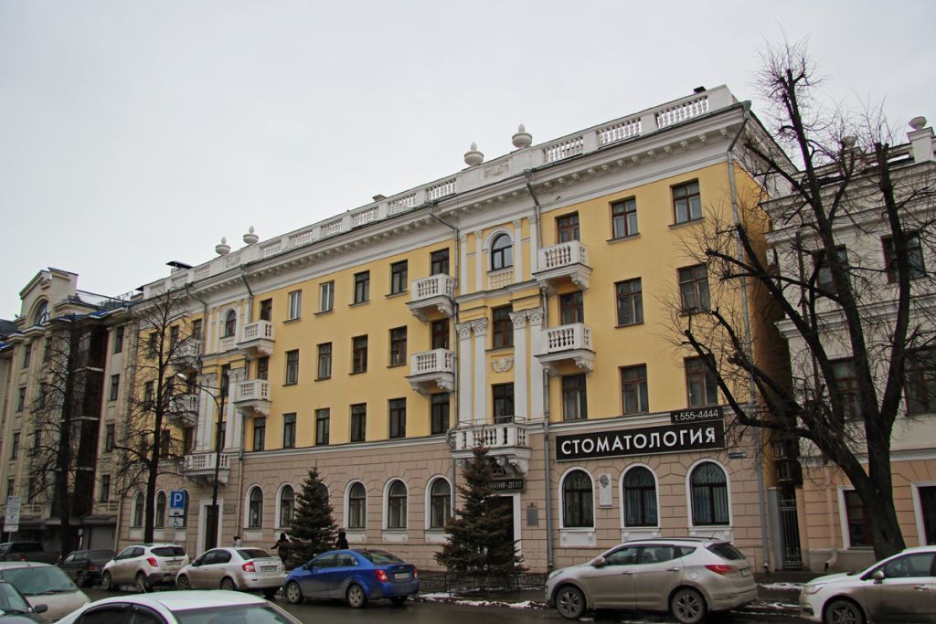 1. Местоположение памятника на исторической красной линии ул. Театральная в городе Казани;2. Объемно-пространственная композиция и структура памятника: симметричное, прямоугольное в плане 4-х этажное здание с подвалом под вальмовой скатной кровлей, завершенное парапетом с 4-мя навершиями и оформленное 10-ю открытыми балконами-лоджиями с главного фасада и 4-мя с дворового;3. Крыша: историческая конфигурация кровли (скатная); геометрия и габариты крыши здания; материал конструкций (стропила и обрешетка деревянные); высотные отметки по коньку и навершиям; характер кровельного покрытия (гладкий окрашенный металл с фальцевым соединением);4. Композиция и архитектурно-художественное оформление фасадов здания; горизонтальное членение здания рустами на высоту первого этажа; междуэтажный карниз простого профиля; окна 1 этажа с арочными перемычками, обрамленные простыми наличниками с несложным профилем; парадные входы с улицы Театральной, а также симметричные входы со двора, выделенные раскреповкой во всю высоту здания, обрамленные наличниками несложного профиля, на уровне 2 и 3 этажей, выделенные парными пилястрами с капителями коринфского ордера (а на дворовом фасаде — ионического ордера), на уровне четвертого этажа — парными пилястрами с капителями коринфского ордера, покоящимися на профилированных базах; окна четвертого этажа с арочными перемычками, обрамленные наличниками несложного профиля, с подоконными нишами, декорированными балясинами; местоположение, конфигурация, пропорция, форма и размер оконных и дверных проемов, ризалитов, парапета на столбиках с балюстрадой с балясинами и навершиями в виде вагонов на уличном фасаде и решетками на дворовом фасаде, балконов второго, третьего и четвертого этажей с ограждениями в виде балясин, на одинарных и парных орнаментированных кронштейнах с балюстрадой, парных пилястр на базе с капителями, полуциркульных оконных ниш 1-гo этажа, подоконные полочки с мысиком и на кронштейнах, тянутые оклады дверных и оконных проемов, массивные козырьки входных проемов, со двора на массивных кронштейнах (модульонах), завершением фасада простого гладкого фриза и профилированного, орнаментированного карниза на кронштейнах (модульонах), междуэтажных лепных декоративных и пластических элементов с рокайльными мотивами (рог изобилия с пальметтой, поясок тения, растительные украшения кронштейнов (модульонов): листья дуба и аканта;5. Отделка фасадной поверхности: окрашивание по штукатурному слою, рустика (прямоугольная в разбежку, веерная, линейная); колористическое решение: основная плоскость стен (со 2-гo по 4-й этажи включительно): oxpa; декоративно- пластические элементы: белый цвет;6. Заполнение дверных проёмов: столярное (деревянное), филенчатое и остекленное, сопутствующие элементы (откосы, порталы); местоположение, пропорции, первоначальная геометрия и конструкция заполнений оконных проёмов: столярное (деревянное), многостекольное, сопутствующие элементы (откосы, порталы); колористическое решение дверного и оконного заполнения: оттенки темно-коричневой гаммы;7. Конструктивная схема: подлинные кирпичные стены; кирпичные перемычки; конструктивное решение плоских перекрытий; местоположение, конструктивное решение и конфигурация балконов; местоположение, геометрия и габариты исторических лест