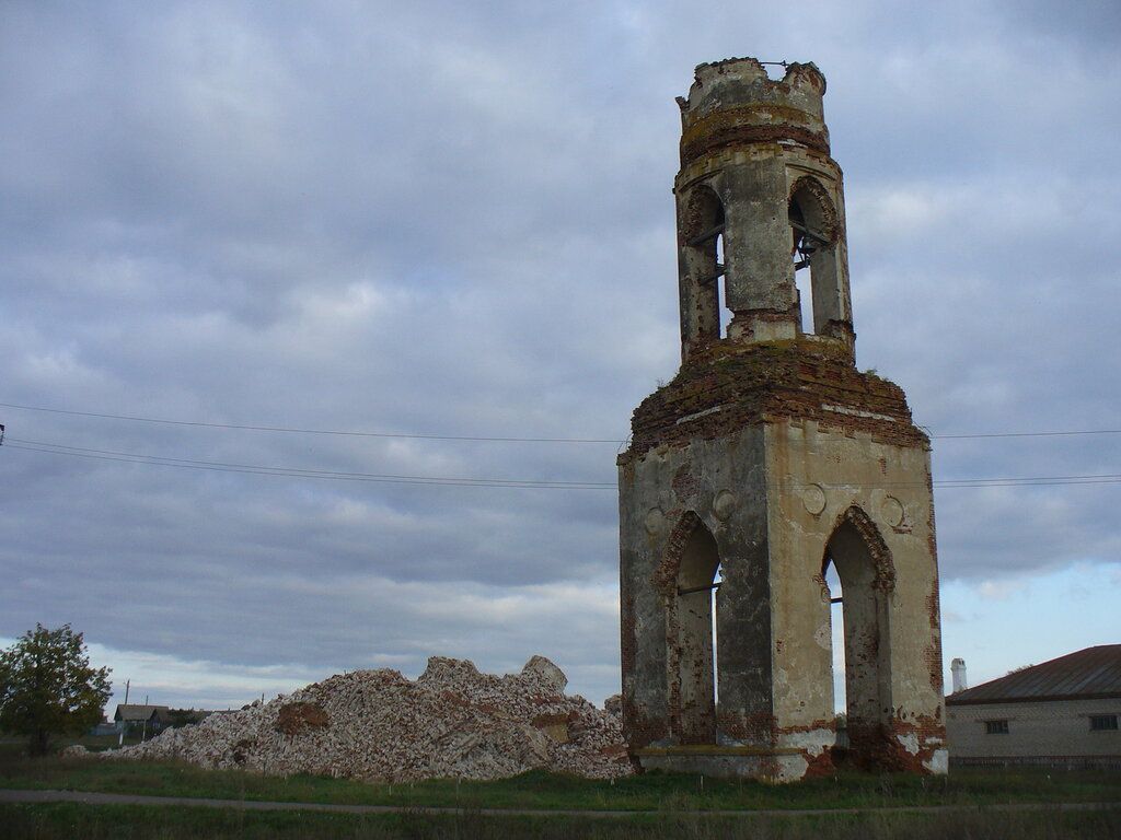 Колокольня церкви Казанской Божьей матери с руинами основного объема