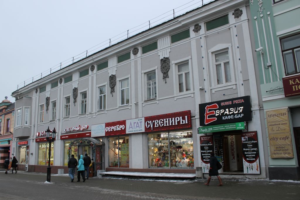 –градостроительные и композиционные характеристики в структуре исторической регулярной застройки, местоположение здания по ул. Баумана (формирует силуэт центральной улицы и играет значимую роль в панорамном восприятии исторического внутригородского пространства; –объёмно-пространственная структура двухэтажного прямоугольного в плане здания с антресолью и подвалом; –конструктивная схема: подлинные кирпичные стены, подлинные кирпичные перемычки проёмов; историческое перекрытия (включая арки Монье); историческая конфигурация, высотные отметки и конструктивное решение скаткой крыши, материал кровли – листовое кровельное железо с двойным фальцем, историческая система водоотведения; –местоположение, геометрия, габариты и конструктивное решение исторической парадной лестницы; –композиция и архитектурное решение фасадов: асимметричная композиция главного фасада с выступающим эркером в левой части и чётком поэтажным делением на торговую и жилую функцию; высокий цоколь; пилястры в оформлении углов здания и простенков, акцентированные лепным геральдическим орнаментом и нишкой с фактурной штукатуркой; ступенчатые лопатки в верхних участках стен с геральдическим орнаментом; прямоугольные витринные окна первого этажа, прямоугольные проёмы второго этажа в обрамлении простого рамочного наличника, подоконная тяга; фриз с прямоугольными нишками с заполнением керамической плиткой; многоступенчатый карниз большого выноса в завершении фасадов; полуциркульный аттик и парапетное ограждение в виде столбиков и металлического ограждения (утрачены); –местоположение, габариты и пропорции первоначальных оконных и дверных проёмов, конструкции исторических столярных заполнений проёмов (материал – дерево). Предмет охраны может быть уточнён при проведении натурных и реставрационных исследований.