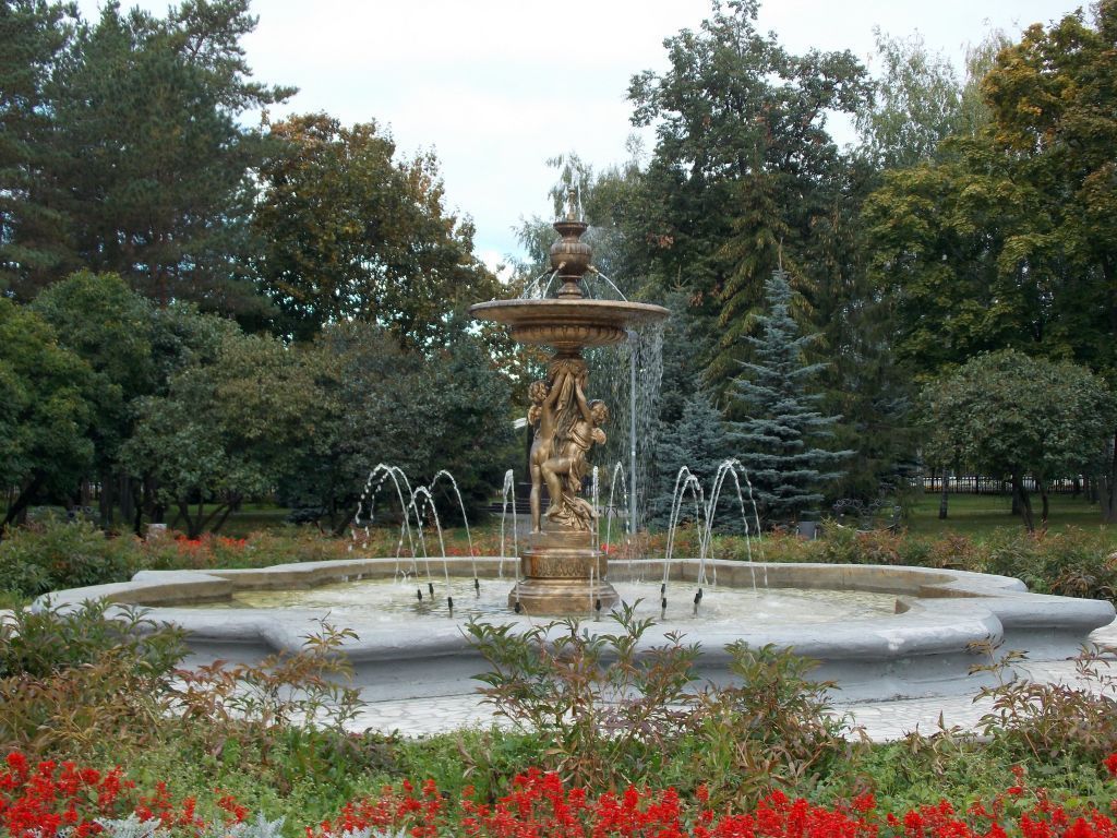 - местоположение скульптурной композиции, градостроительные и композиционные характеристики в структуре исторического парка (закрепляет композиционный центр парка \"Ленинский сад\");- конструктивное решение, историческая конфигурация, геометрия бассейна у подножия фонтана (в плане квадратная с полукруглыми выступами на каждой стороне), бортики бассейна, профилированные с наружной стороны;- скульптурная композиция:первый ярус (основание) - три цилиндра, уменьшающихся кверху, с профилированным переходом от одного к другому; средний цилиндр украшен выпуклым орнаментом;второй ярус - два крылатых амура с драпировкой;третий ярус - двухъярусная чаша на короткой ножке; тулово чаши выполнено с выпуклым рельефом, широкие края чаши украшены выпуклым орнаментом;верхний ярус - вазон с четырьмя фигурными сосками по бокам и одним вертикальным, завершающим композицию;- материал - бронза.