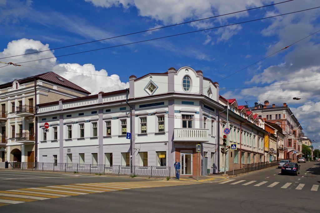 1.Местоположение здания на углу красных линий улиц Пушкина и Горького;2.Общий силуэт здания, объемно-пространственная композиция двухэтажного с антресольным этажом, Г—обратного в плане здания с дворовым пристроем, высотные отметки по венчающему карнизу, коньки кровли основного двухэтажного объема пo ул. Пушкина, конек кровли по ул. Горького утрачен;3.Конструктивная схема здания: подлинные кирпичные стены; сводчатые кирпичные перекрытия; кирпичные перемычки; перекрытия второго и антресольного этажей — утрачены;4.Историческая конфигурация и конструктивное решение крыши — утрачено;5.Композиционное решение, пропорции и архитектурное оформление фасадов:- асимметричная композиция уличного фасада по ул. Пушкина с вертикальным членением здания на четыре неравные части в девять оконных осей, раскрепованная по углам и в простенках лопатками; горизонтальное членение фасада междуэтажным профилированным карнизом по всему периметру здания на две разновеликие части, где стены первого этажа между лопатками рустованы; второй, более высокий этаж, украшен глазурованной квадратной керамической плиткой на фризе и между окнами, профилированными тягами между окнами, профилированным венчающим карнизом; завершение фасада в виде парапетной стенки с квадратными филенками над основной частью фасада, раскрепованное столбиками с купольным завершением и украшенными штукатуркой под «шубу»; завершение скошенного yrлa фасада в виде аттика, раскрепованного по углам столбиками с купольным завершением и украшенными штукатуркой по «шубу», с центральным круглым окном с угла и ромбовидным окном с декором в виде глазурованной плитки по периметру с круглыми нишками над окнами.Месторасположение, размер, оформление оконных проемов: оформление прямоугольных оконных проемов второго этажа прямоугольными наличниками с простыми сандриками и подоконными полочками; оформление оконных проемов антресольного этажа в центральной части профилированными наличниками; месторасположение, размер, ограждение балкона второго этажа: вертикальные вытянутые овальные прорези по периметру с декором в виде кругов между ними, покрытие ограждения: штукатурка под \"шубу\";- ассиметричная композиция уличного фасада по ул. Горького с вертикальным членением здания на пять неравных частей в тринадцать оконных осей, раскрепован в углах и простенках лопатками, главный вход расположен на скошенной угловой части; горизонтальное членение фасада междуэтажным профилированным карнизом по всему периметру здания на две разновеликие части, где угловая часть первого этажа в две оконных оси стены между лопатками рустована; второй, более высокий этаж, украшен в угловой части в две оконных оси глазурованной квадратной керамической плиткой на фризе и между окнами; завершение скошенного угла фасада в виде аттика, раскрепованного по углам столбиками с купольным завершением и украшенными штукатуркой под \"шубу\", с центральным круглым окном с угла и ромбовидным окном с круглыми нишками над окнами; частично утраченное завершение фасада в виде парапетной стенки с квадратными филенками над основой частью фасада, раскрепованное столбиками с купольным завершением и украшенными штукатуркой под \"шубу\". Месторасположение, размер, оформление оконных проемов: оформление прямоугольных ок