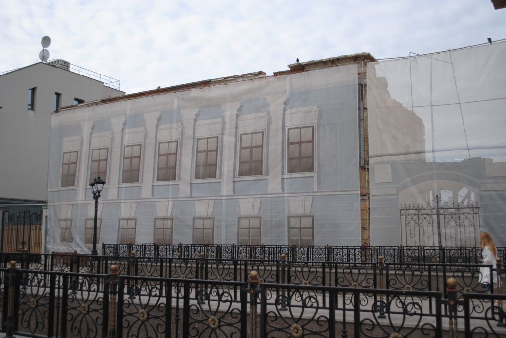 1. Местоположение здания по красной линии ул. Баумана;2. Объемно-пространственная композиция двухэтажного с антресольным этажом Г-образного здания (дворовая часть утрачена), высотные отметки по историческим венчающим карнизам (графическая схема №1-4);3. Конструктивная схема: подлинные кирпичные стены; подлинные кирпичные перемычки проемов (графическая схема №5-6);4. Форма кровли - вальмовая, покрытие листовое кровельное железо (утрачено) (графическая схема №5-6);5. Композиция и архитектурное решение главного фасада (графическая схема №5-6): симметричная композиция главного фасада в семь оконных осей, горизонтальный руст 1-го этажа, замковые камни с акантовыми листами по центру оконных проемов 1-го этажа, профилированная междуэтажная тяга и прямоугольные подоконные 2-го этажа, плоские пилястры с ионическими капителями в простенках второго этажа; прямолинейные профилированные сандрики оконных проемов 2-го этажа на фигурных консолях; лепнина растительного характера в надоконной плоскости второго этажа, профильные тяги во фризе, венчающий карниз большого выноса; архитектурно-художественное оформление боковых фасадов аналогично главному.