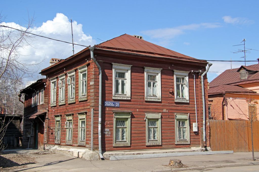 местоположение усадьбы, градостроительные и композиционные характеристики в структуре исторической застройки (закреnляет красную линию застройки улицы Ульновьrх-Ленина), территория домовладения в сложившихся границах; -объемно-пространственная и композиционная структура усадьбы, состоящей из двух зданий: двухэтажного деревянного усадебного дома прямоугольного в плане, расположенного по красной линии улицы застройки, и одноэтажного деревянного здания флигеля с отступом от красной линии в глубине сада (утрачен);Усадебный дом. объемно-пространственная и композиционная структура двухэтажного деревянного здания, вьrходящего торцевым симметричным фасадом в три оконных оси на красную линию улицы Ульяновых-Ленина, с двухэтажным деревянмым пристроем на левом боковом фасаде меньшим по высоте с входной группой на 1 этаже с раздельными входами на этажи под односкатным козырьком на поддерживающих кронштейнах; -подлинный кирпичный цоколь, кирпичная брандмауэрная стена, бревенчатые стены, конструктивное решение исторических перекрытий;-историческая конфигурация, геометрия, габариты и конструктивное решение скатной вальмовой крыши здания со слуховым окном под двускатной крышей со стороны дворового фасада, материал кровли -листовое железо; - отделка и архитектурные детали фасадов: обшивка бревенчатых стен фасадов горизонтальной калеванной доской, rrрямоуrольные оконные проемы I и 2 этажа в обрамлении деревянных рамочных наличников с завершающими карнизными досками с подкарнизными поддерживающими фигурными кронштейнами, угловые лопатки основного здания на высоту двух этажей в обработке горизонтальной калеванной доской, два ряда обшивной доски по фризу основного объема здания и профильный обшивной карниз небольшого выноса в завершении здания; - местоположение и габариты оконных и дверных проемов, геометрия столярных заполнений оконных проемов - деревянные двойные рамы в раздельных коробках.