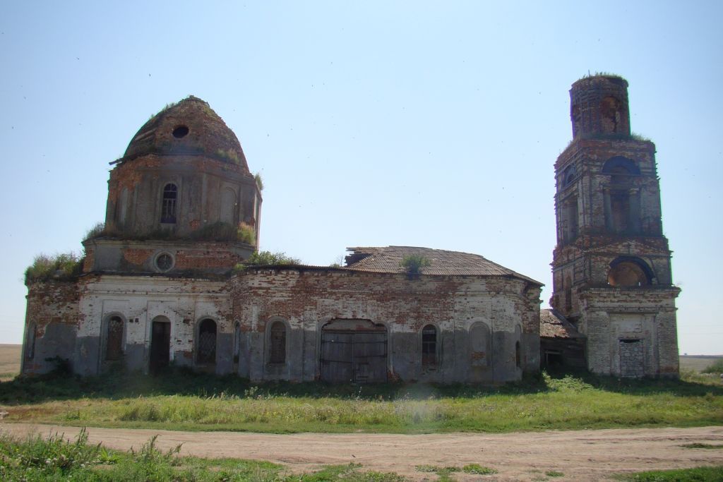 -местоположение здания церкви на левом берегу р.Чигирки;-объемно-пространственная и симметрично-осевая композиционная структура трехпрестольной церкви, состоящей из: одноэтажного, более широкого здания трапезной со скошенными углами под четырех скатной кровлей, квадратного в плане одноэтажного с аттиковым 2 ярусом четверика храмовой части и восьмерика под восьмигранным сомкнутым сводом (барабан и главка не сохранились), полукруглой апсиды под конхой и четырехъярусной, квадратной в плане колокольни с разновеликими четвериками 1 и 2 и З ярусов и круглого барабана 4 яруса в завершении четвертого яруса (купольное покрытие, барабан и главка утрачены), трапезная соединяется с колокольней через переход, вход через прямоугольные дверные проемы северного и южного фасадов храмовой части, и через прямоугольные дверной проемы в нижним четверике с трех сторон колокольни;-существующие габариты и общий абрис объемов церкви, архитектурный облик фасадов церкви;-конструктивная схема, подлинные кирпичные стены, сводчатые перекрытия, кирпичные перемычки, металлические связи;-подлинная историческая конфигурация, геометрия и конструктивное решение крыш, купольных завершений с главками на барабанах, купольное восьмигранного покрытие свода храмовой части;-архитектурные детали фасадов: поверхности стен фасадов из красного кирпича с известковой обмазкой и покраской, полуциркульные оконные проемы в рельефных прямоугольных плоскостях в профилированном обрамлении с выпуклыми прямоугольниками в подоконной части, арочные оконные проемы и ниши восьмерика храмовой части в обрамлении профилированных наличников в прямоугольных нишах, круглые зарешеченные проемы с северной и южной сторон аттикового яруса четверика, квадратные ниши с дверными проемами в обрамлении тосканских трехчетвертных колонн, поддерживающих антаблемент из плоского фриза и профилированного ступенчатого карниза с полосой под карнизных «гут» нижнего яруса колокольни, полуциркульные проемы с ложными треугольными фронтонами в завершении 2 яруса колокольни с четырех сторон, тосканские колонные в обрамлении широких прямоугольных проемов З яруса колокольни и полуциркульные проемы резонатора над ними, плоские фризы и профилированные ступенчатые карнизы в завершении всех объемов церкви и ярусов колокольни;-кованные ажурные оконные решетки;-местоположение, габариты и пропорции первоначальных оконных и дверных проемов, геометрия оконных проемов;