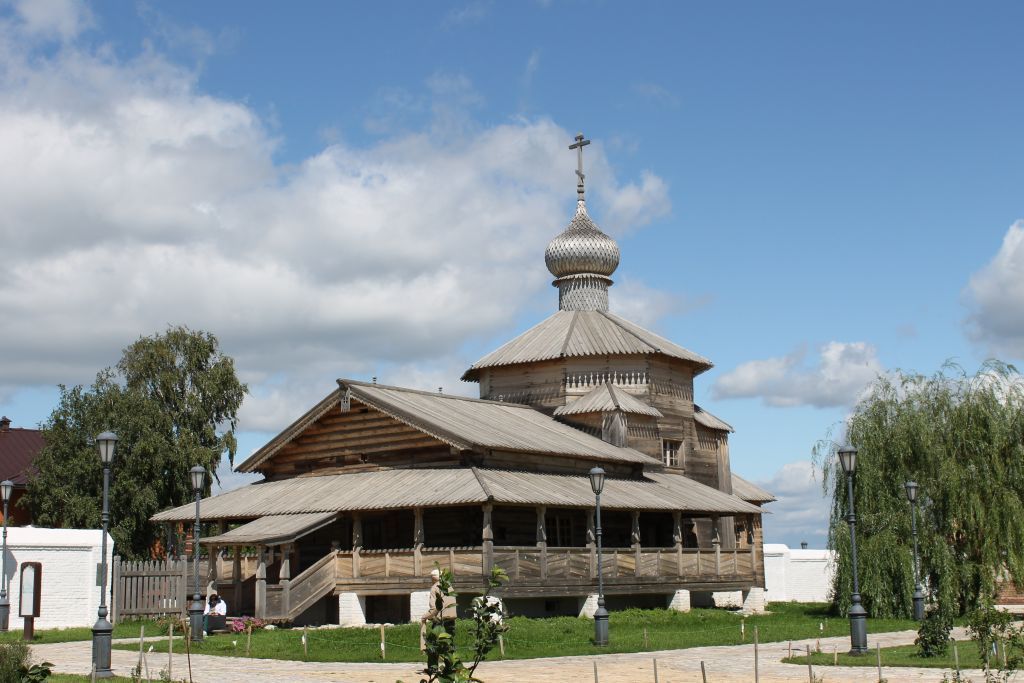 -местоположение здания: церковь расположена в северо-восточной части территории Иоанно-Предтеченского женского монастыря около Святых (северных) ворот монастыря в непосредственной близости от монастырской стены; -объемно-пространственная и планировочная структура церкви: вытянутый трехчастный деревянный объем на кирпичном цоколе, состоящий из двухъярусной храмовой части прямоугольный двухсветный сруб храмового четверика и восьмерик под восьмискатной крышей с главкой на восьмигранном барабане в завершении; трапезной одноэтажныи квадратный в плане сруб под двухскатной крышей и апсиды — пятигранный одноэтажный сруб с пятискатной крышей; -композиция и архитектурное решение фасадов церкви: не обшитый сруб с двумя волоковыми и двумя «красными» окнами на южном фасаде, тремя окнами в алтаре и одним на северном фасаде, в храмовой части; -конструктивная схема: кирпичный цоколь на 6 кирпичных столбах под трапезной и на 4 под храмовым четвериком, плоские деревянные перекрытия, срубные бревенчатые стены: первый ярус храмовой части и трапезная рублены в «обло с остатком», восьмерик второго яруса, малый восьмерик и апсида рублены «в лапу»; -историческая конфигурация, геометрия, габариты и конструктивное решение крыши трапезной (самцово-слеговая конструкция), сохранившиеся исторические конструкции восьмискатной крыши храмового восьмерика, главки на восьмигранном барабане и пятискатной апсиды, материал кровли — тес, лемех на главке; -отделка и декоративное убранство фасадов: цоколь с известковой обмазкой, сохранившаяся наружная обшивка доской 19 века на западной стене трапезной, прямоугольные оконные проемы в обрамлении простых наличников, резные карнизы под свесами кровли по периметру всех объемов и ярусов; -сохранившиеся маркировка, следы врубок, кованых гвоздей; -историческое местоположение, габариты и пропорции оконных и дверных проемов, столярные заполнения оконных проемов (деревянные двойные рамы); -входная кованая дверь и деревянная плотничная дверь с коваными петлями (жиковинами) и засовами храмовой части церкви, дверь в трапезную (западный вход) с замком; -декоративное убранство интерьеров: тябловый четырехъярусный резной иконостас, деревянные пристенные лавки вдоль стен трапезной и в алтаре, арочный проем лучковой формы, разделяющий храм и трапезную, дощатые потолки «в елку» по балкам прямоугольного сечения, рубленые стены в интерьере окантованы.