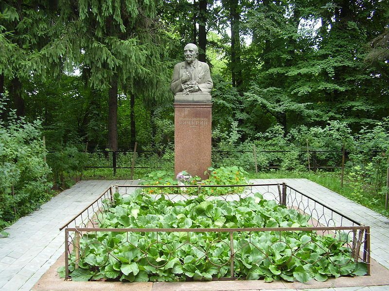 Предмет охраны объекта культурного наследия регионального значения «Бюст И.В. Мичурина», расположенного по адресу: Тамбовская область, г. Мичуринск, ул. Основной питомник1. Текстовое описание предмета охраны объекта культурного наследия. 1.1. Местоположение объекта культурного наследия и его историческое пространственно-композиционное построение: «Бюст И.В. Мичурина» расположен на территории Основного питомника, входящего в мемориальный комплекс, связанный с жизнью и деятельностью И.В. Мичурина. Бюст установлен на центральной оси моста, ведущего на территорию питомника. Памятник был установлен 7 июня 1939 года, в ознаменование 4-й годовщины со дня смерти И.В. Мичурина. Его авторами являются московский скульптор Н.И. Шильников и архитектор Г.И. Луцкий.1.2. Габариты, конфигурация, оформление, материалы:памятник представляет собой скульптурный поясной портрет высотой около 1,5 м, установленный на прямоугольном гранитном постаменте. Материал скульптурного портрета – серый гранит, постамента – красный гранит. В правой руке, прижатой к груди, книга – символ мичуринской теории о преобразовании природы. Левая рука поддерживает груду плодов – символ изобилия.Небольшая бронзовая табличка, установленная с правой стороны скульптуры с именем автора, на момент осмотра утрачена. На постаменте выгравированы надписи:с лицевой стороны: «Иван Владимирович Мичурин 1855-1935»,с правой стороны: «Мы не можем ждать милостей от природы; взять их у нее – наша задача», с левой стороны: «Человек может и должен создавать новые формы растений лучше природы».Территория вокруг постамента замощена прямоугольной тротуарной плиткой серого и красного цвета.