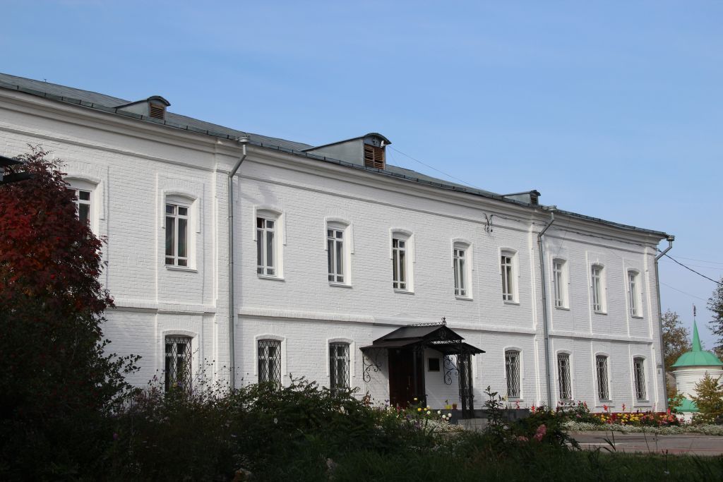 1.Градостроительные характеристики здания келейного корпуса, расположенного на территории Богородице-Алексеевского мужского монастыря и его участие в формировании ансамбля монастырских строений на период кон. XIX в. Местоположение келейного корпуса в западной части территории монастыря, на одной композиционной оси с Казанской церковью в непосредственной близости от ее главного западного фасада. Ориентация объема по оси север-юг западным фасадом вдоль бровки рельефа по ул. Крылова на небольшом расстоянии от массивной кирпичной ограды монастырской территории и его участие в формировании панорамного восприятия ансамбля монастыря с нижней террасы западной части городской территории. Секторы и направления видовых раскрытий корпуса келий при его восприятии с монастырской территории в ансамбле с культовым сооружением.2.Объёмно-пространственная композиция здания на дату постройки 1885 г., представляющего собой 2-х этажный с подвалом прямоугольный в плане кирпичный объем. 3.Конфигурация крыши (вальмовая), её форма, материал кровельного покрытия (металл), высотные отметки по коньку и карнизу крыши здания, включая слуховые окна с лучковым завершением на кровле здания. Система водостоков и места расположения водосточных труб. 4.Композиция и архитектурно-художественное оформление фасадов на дату строительства 1885 г., включая:4.1.Симметричную композицию западного фасада с оформлением центральной оси слабо выступающим ризалитом лестничного блока. Фронтальная композиция боковых фасадов, решенная в 5 осей оконных проемов, к одному (южному) из которых примыкает переход учебного корпуса Педагогического колледжа. Фронтальная композиция восточного (главного) фасада с акцентированием центральной оси здания парадным входом. 4.2.Местоположение, форму и все типоразмеры оконных проёмов с лучковым завершением.4.3.Местоположение, габариты и форму входов, включая: дверной проем парадного входа с лучковым завершением для 2-х створчатой двери, расположенный по центральной оси восточного (главного) фасада. В том числе прямоугольный дверной проем для одностворчатой двери, расположенный в уровне цоколя северного фасада и предназначенный для входа в подвал. 4.4.Декоративное оформление восточного фасада, включая: профильный карниз простой формы, наличники оконных проемов, междуэтажный пояс простого профиля, местоположение лопаток и их декоративное оформление. 4.5.Декоративное оформление западного и боковых фасадов здания профильным карнизом.5.Материал и характер обработки фасадных поверхностей на период постройки здания 1885 г., включая: неоштукатуренную поверхность кирпичной кладки стен с побелкой.6.Колористическое решение фасадов памятника на 1885 г., основанное на материалах историко-архивных изысканий и натурных исследований.7.Столярные оконные заполнения на период строительства 1885 г., включая: материал (дерево) и первоначальный рисунок переплета оконных рам.8.Сохранившаяся пространственно-планировочная структура интерьеров в габаритах капитальных несущих конструкций стен и перекрытий на период постройки здания 1885 г., включая первоначальные габариты дверных проёмов всех помещений здания. Планировочная структура – коридорная с расположением длинного коридора в центральной части здания и двусторонним расположением помещений. Поэтажн